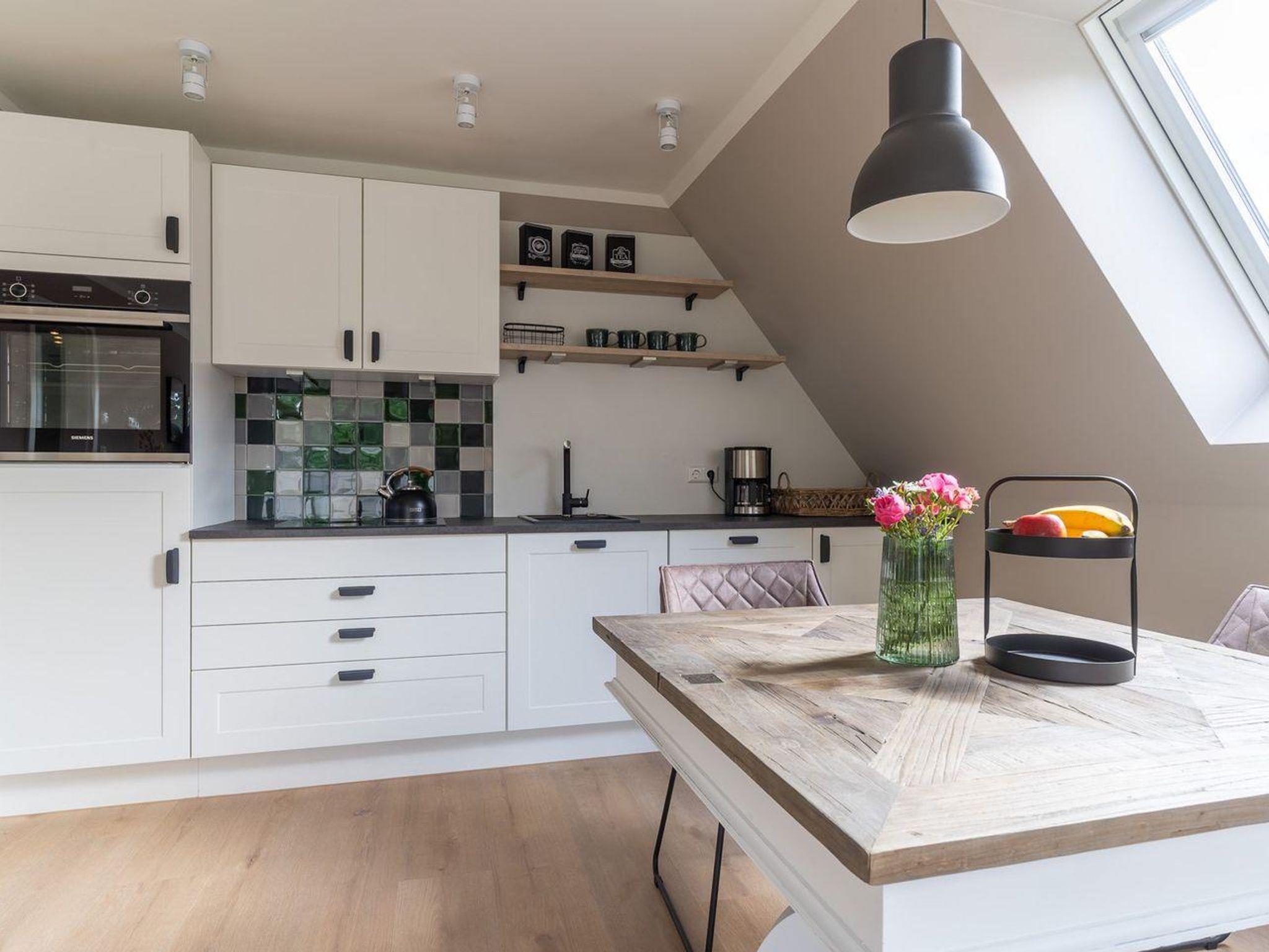 Der lichtdurchflutete Wohnraum mit einer offenen Wohnküche und einem gemütlichen Essbereich bietet jeden Komfort. Die Küche ist voll ausgestattet und verfügt über hochwertige Elektrogeräte.