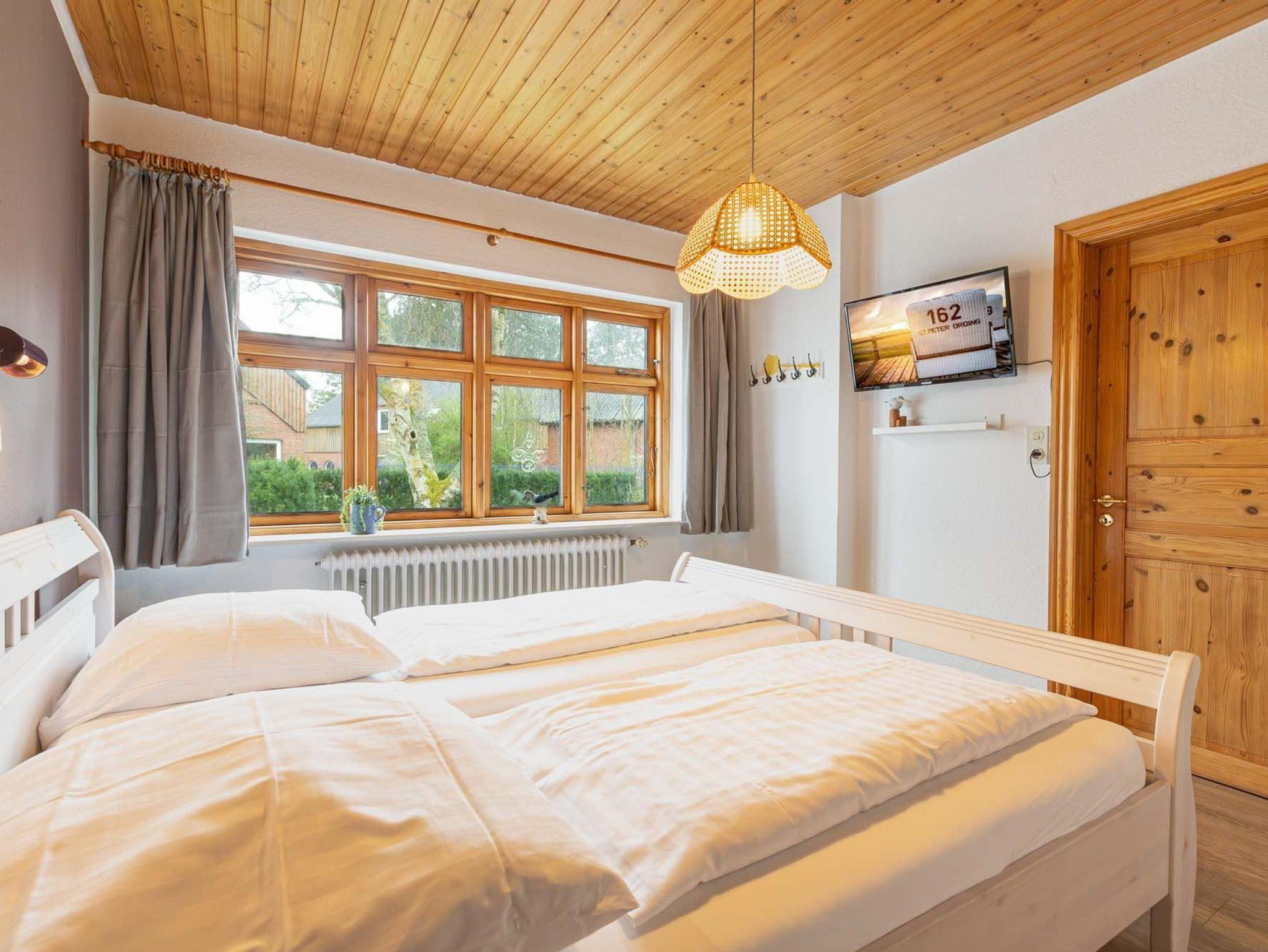 1. Schlafzimmer mit Doppelbett (2x 90x200cm), Kleiderschrank und SMART-TV (Sat).