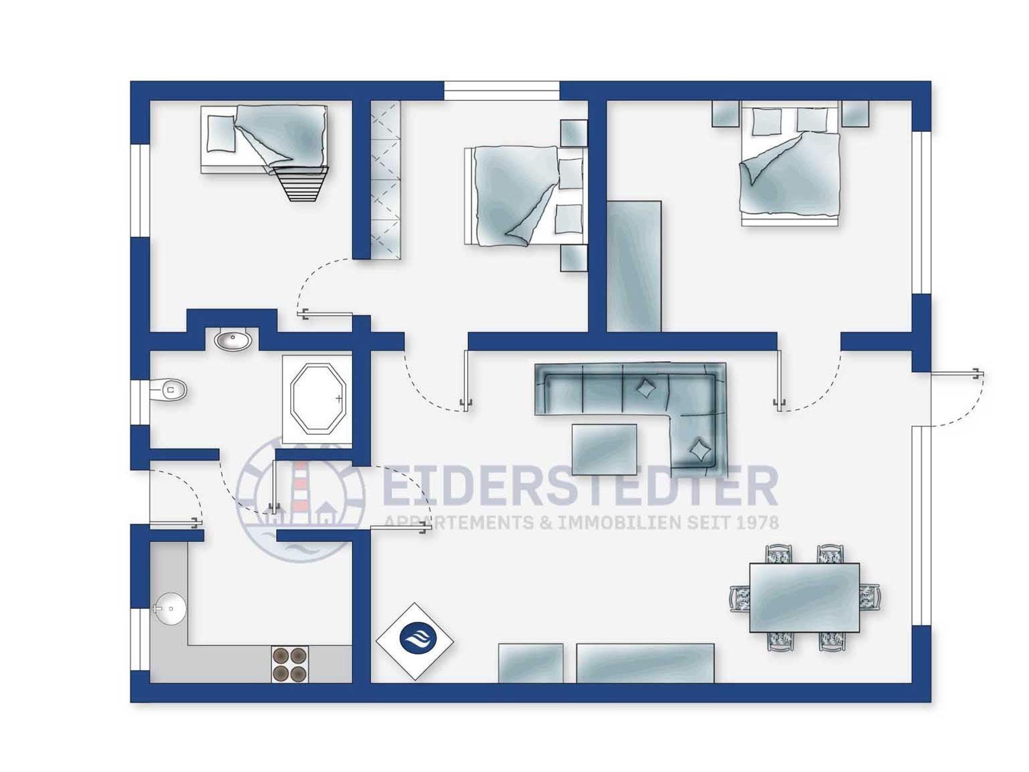 Gemütliche Haushälfte Lütt Töverhuus im nordischen Landhausstil mit 4 Zimmern und ca. 75 m² auf 1 Ebene (EG) für bis zu 6 Personen (Wohlfühlbelegung: max. 4 Erwachsene). Strandnahe und ruhige Lage in einer verkehrsberuhigten Straße im Ortsteil Dorf in Sankt Peter-Ording. Zum Domizil gehören eine sonnige Südterrasse und ein umzäunter Garten mit Kinderspielgeräten und Grillmöglichkeit. Das ideale Domizil für einen Familienurlaub an der Nordseeküste.