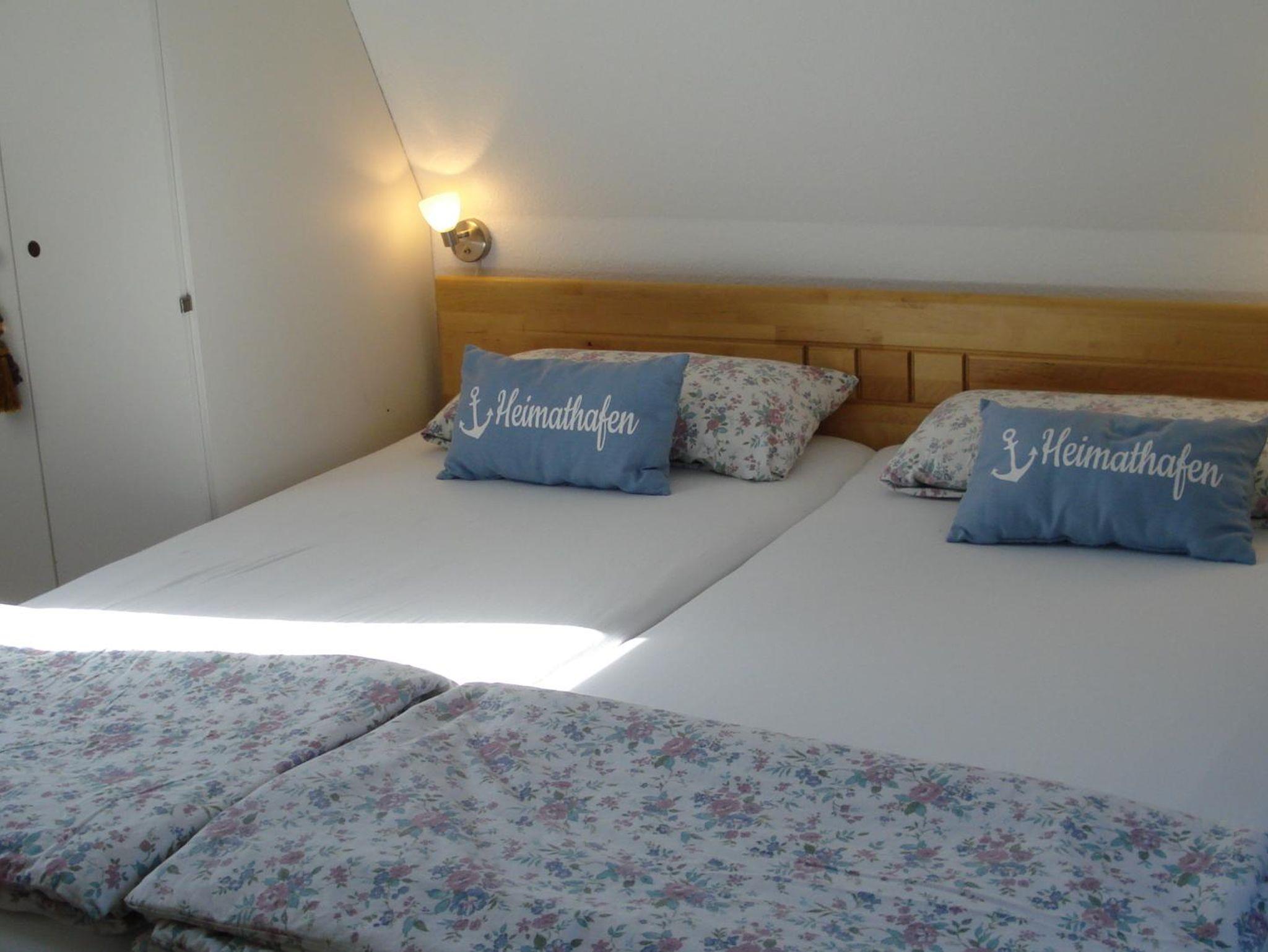 Das Schlafzimmer mit Doppelbett befindet sich auf der Schlafgalerie. Bei Ihrer Ankunft sind die Betten für Sie bezogen und frische Handtücher liegen bereit.
