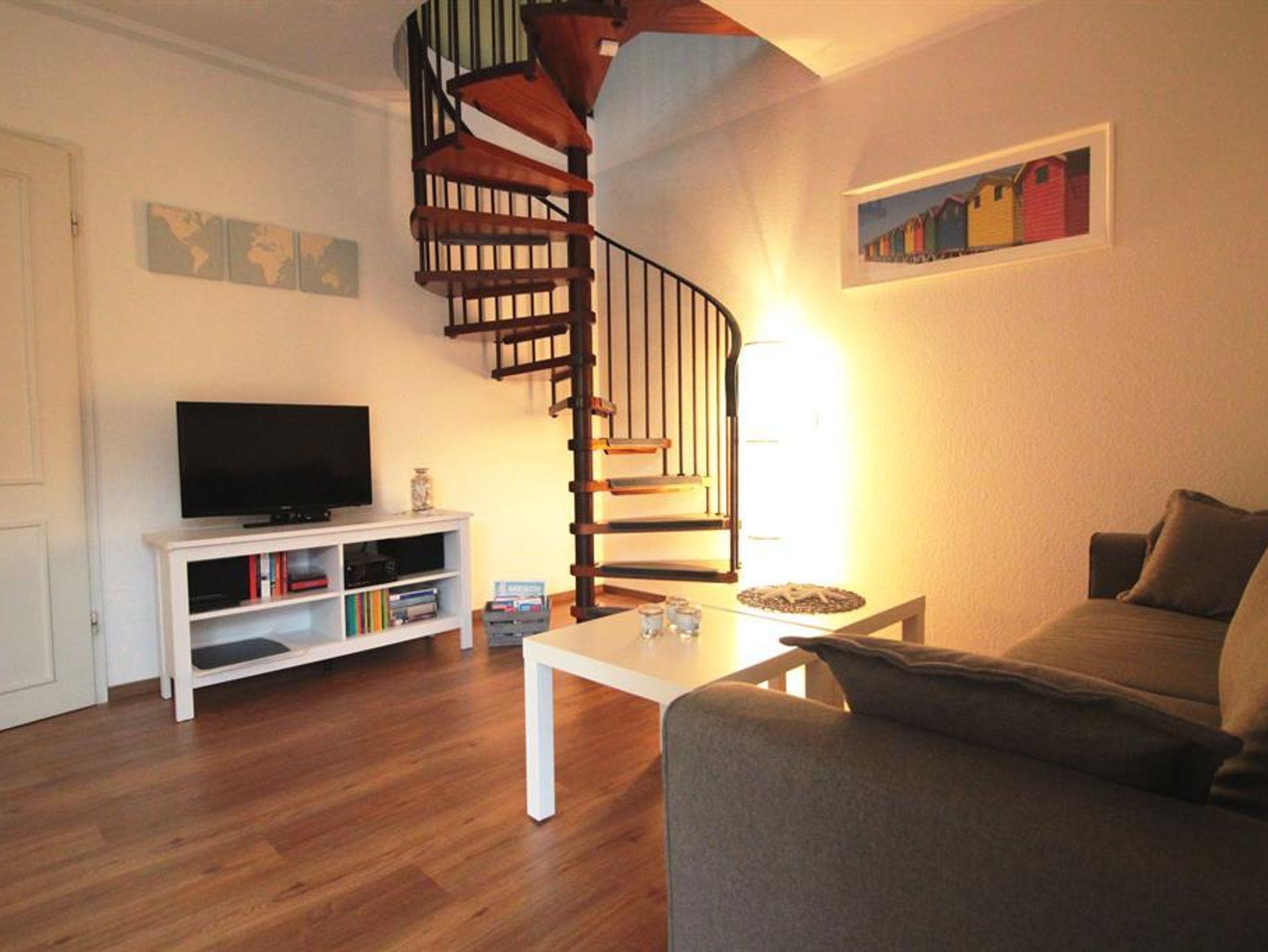 Zur Wohnung gehört ein behagliches Wohnzimmer mit Flachbild-SAT-TV, Hifi-Anlage, Radio und CD-/DVD-Player und einem gemütlichen Sitzbereich. WLAN ist gratis.