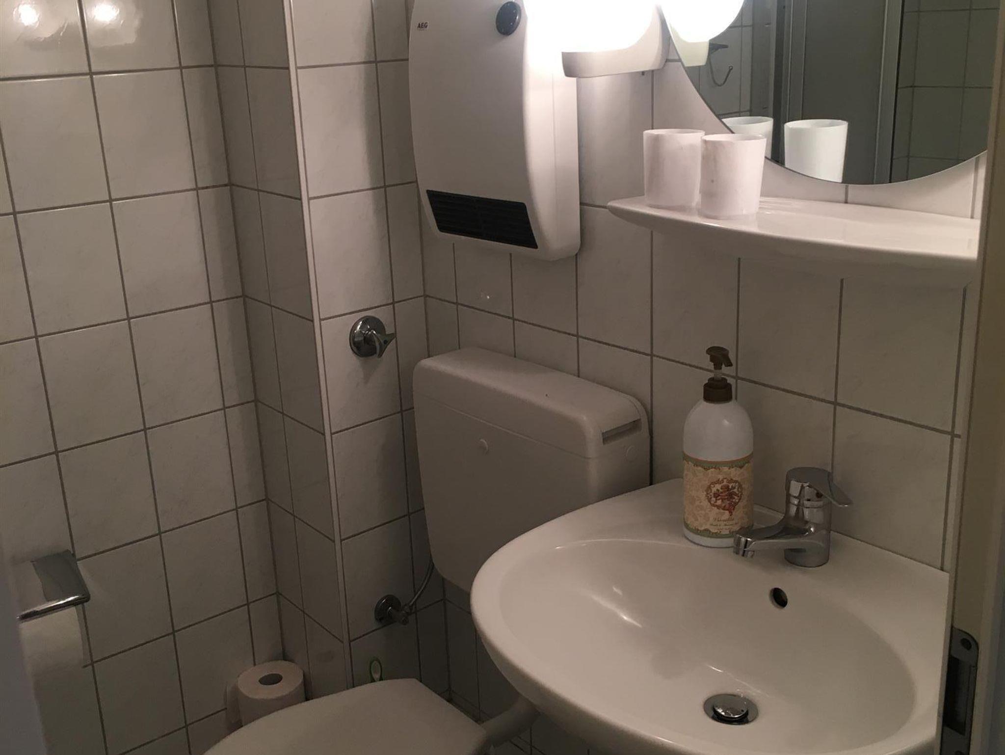 Das Bad ist ausgestattet mit einer Dusche/WC und Waschbecken. W-Lan ist kostenfrei vorhanden.