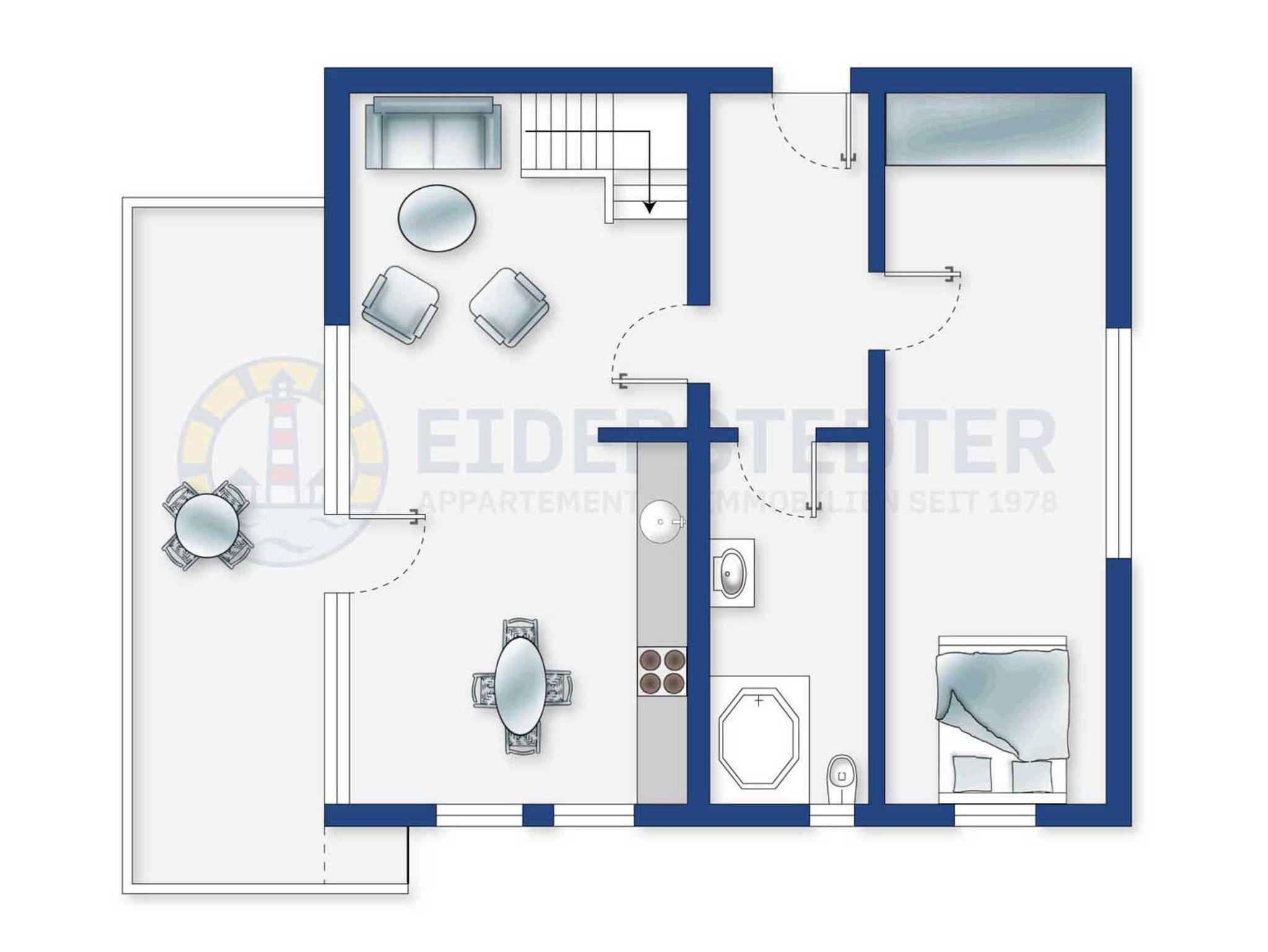Komfortable 3-Zimmer-Ferienwohnung mit ca. 70 qm auf 2 Ebenen (OG, DG) für bis 4 Personen. In zentraler, aber ruhiger Lage im Ortsteil Bad in St. Peter-Ording. Nur wenige Gehminuten von den Geschäften und Restaurants des Kurzentrums entfernt. Genießen Sie entspannte Momente auf dem Südbalkon mit schönem Waldblick.