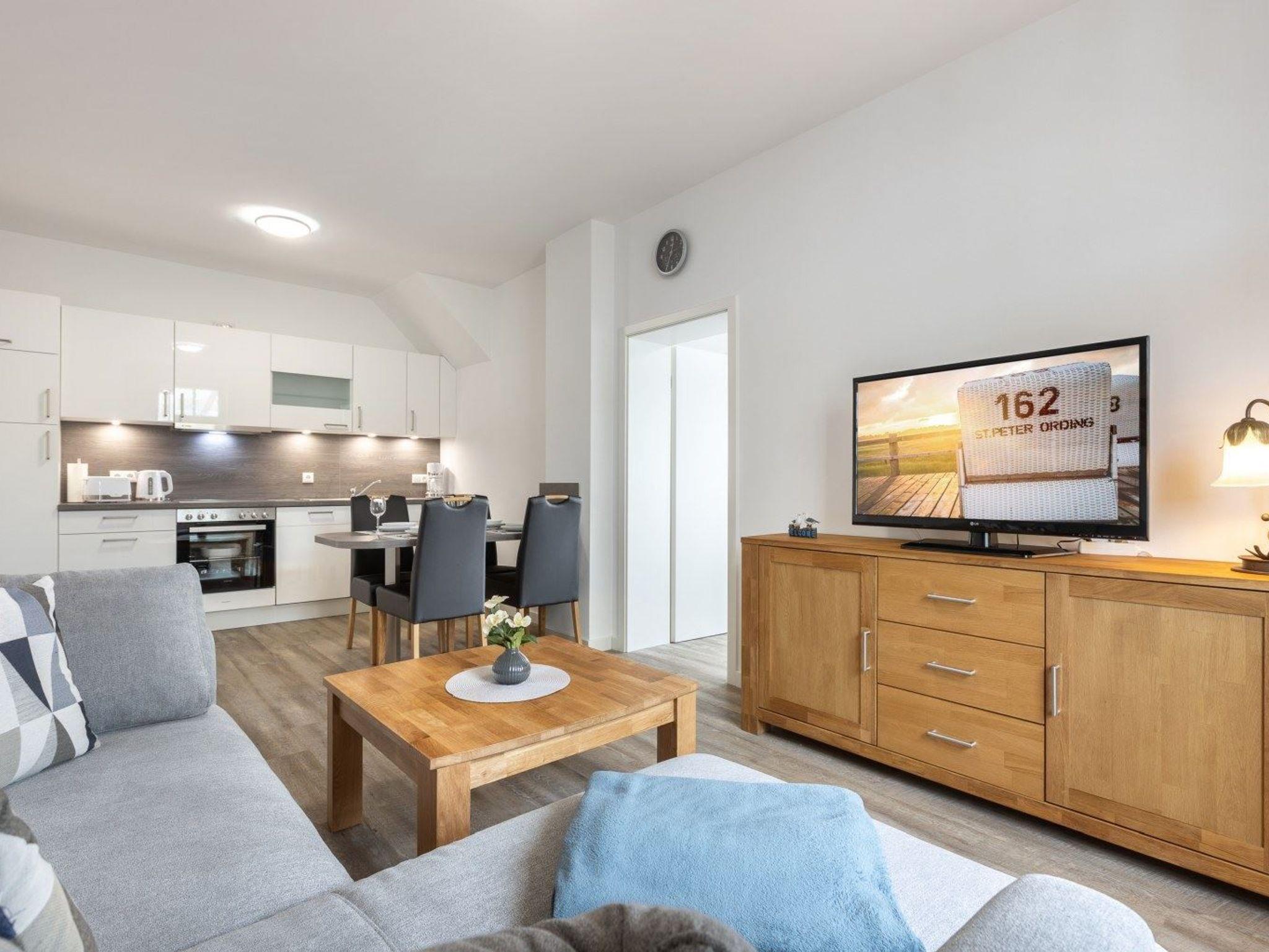 Moderne 3-Zimmer-Ferienwohnung im Haus Everschop mit ca. 60 m² auf 1 Ebene (EG) für bis zu 4 Personen. In einmalig schöner Lage direkt am Deich im Ortsteil Ording in St. Peter-Ording. Das Meeresrauschen unmittelbar vor der Haustür, ideal für Ihren nächsten perfekten Nordsee-Urlaub.
