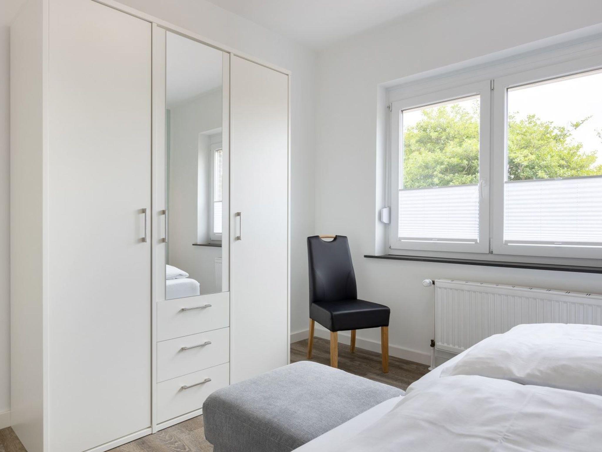 1. Schlafzimmer mit Doppelbett (2x 90x200cm), Kleiderschrank, Stuhl und Hocker.