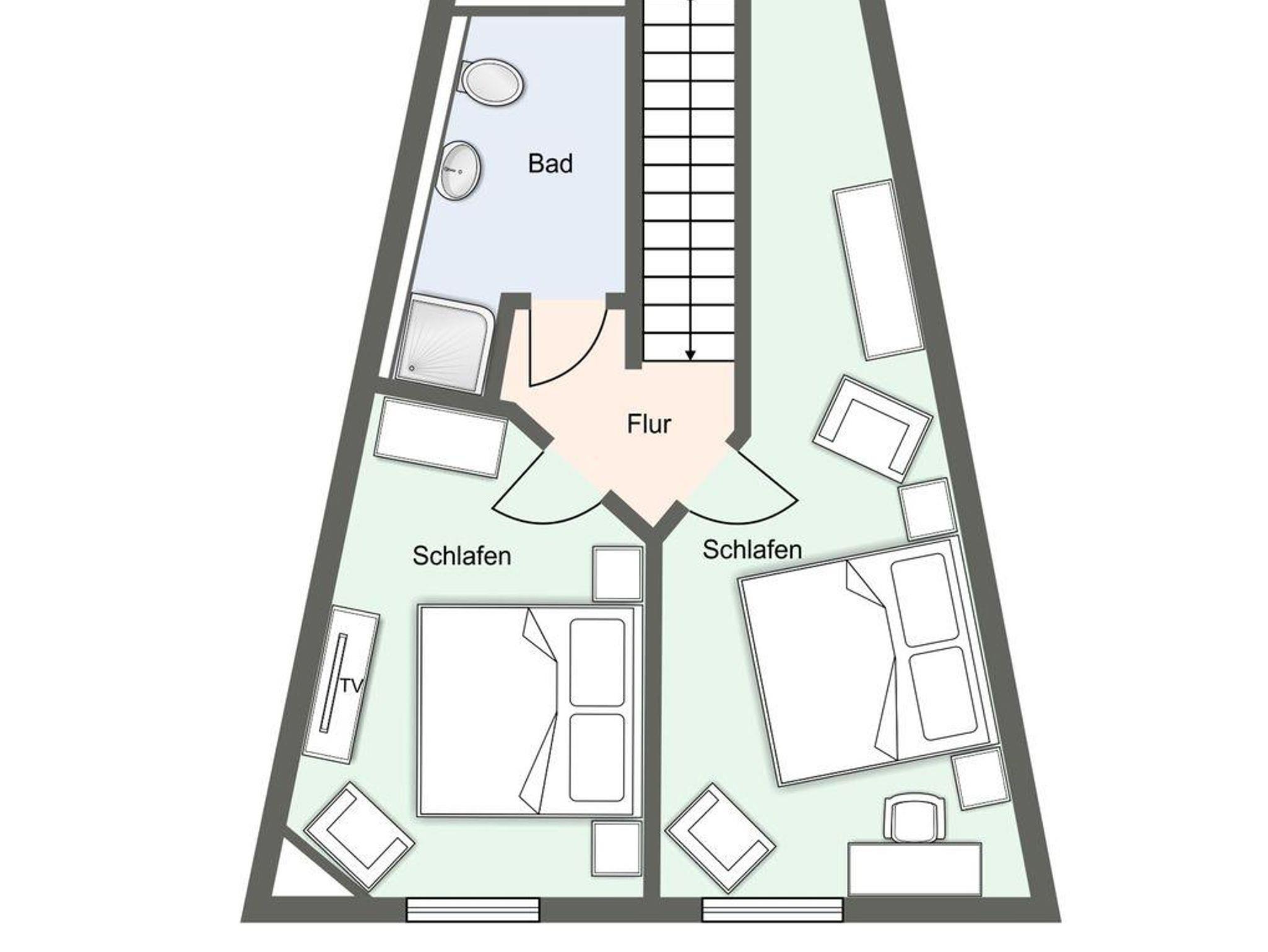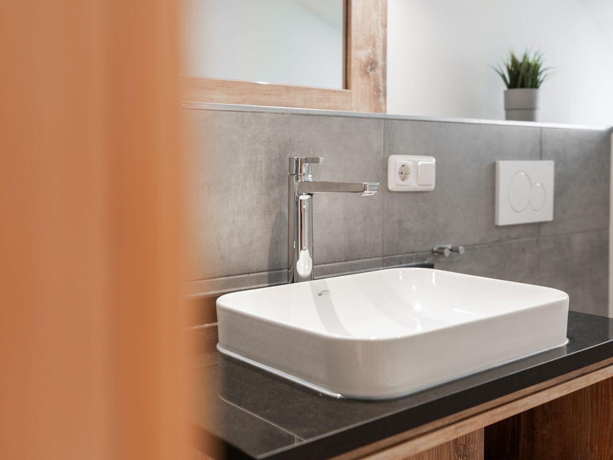 An den Wohnbereich schließt sich ein Gäste WC an. Vom Wohnzimmer gelangen Sie auf eine gemütliche Terrasse. Über eine Treppe aus dem Wohnraum gelangt man in das Obergeschoss mit zwei großzügigen Schlafzimmern mit jeweils einem Boxspringbett (180 x 200 cm) und 1x mit TV. Außerdem ist ein großzügiges Duschbad vorhanden.