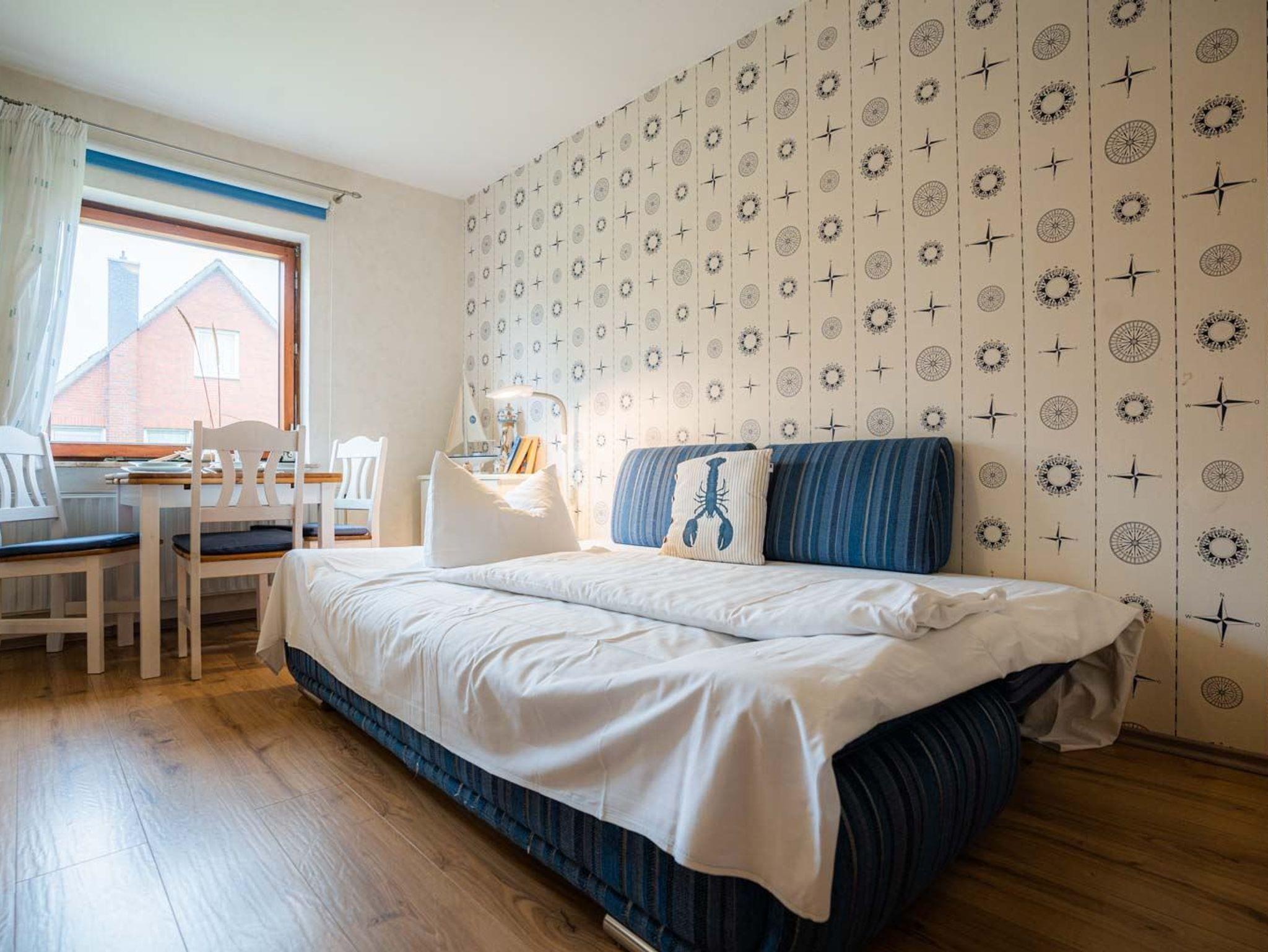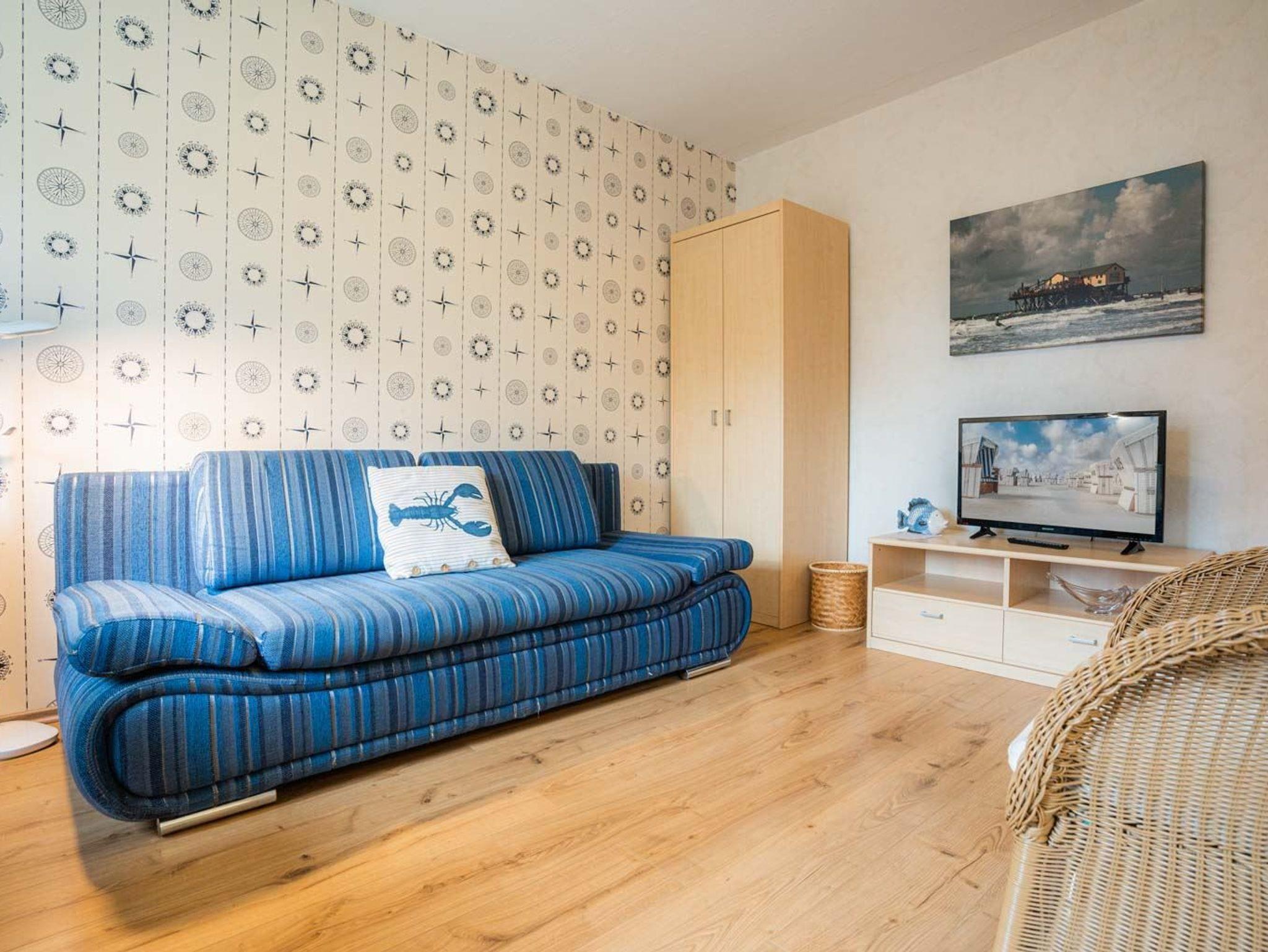 Gemütliche, einfache 2-Zimmer-Ferienwohnung Backbordkajüte im Haus Seewolf mit ca. 41 m² auf 1 Ebene (OG) für bis zu 3 Personen. In ruhiger Lage nahe der Einkaufsstraße im Ortsteil Dorf in St. Peter-Ording. Alle Geschäfte, Restaurants und Bäckereien sind fußläufig bequem erreichbar. Zwei Hunde sind nach Anmeldung herzlich willkommen.