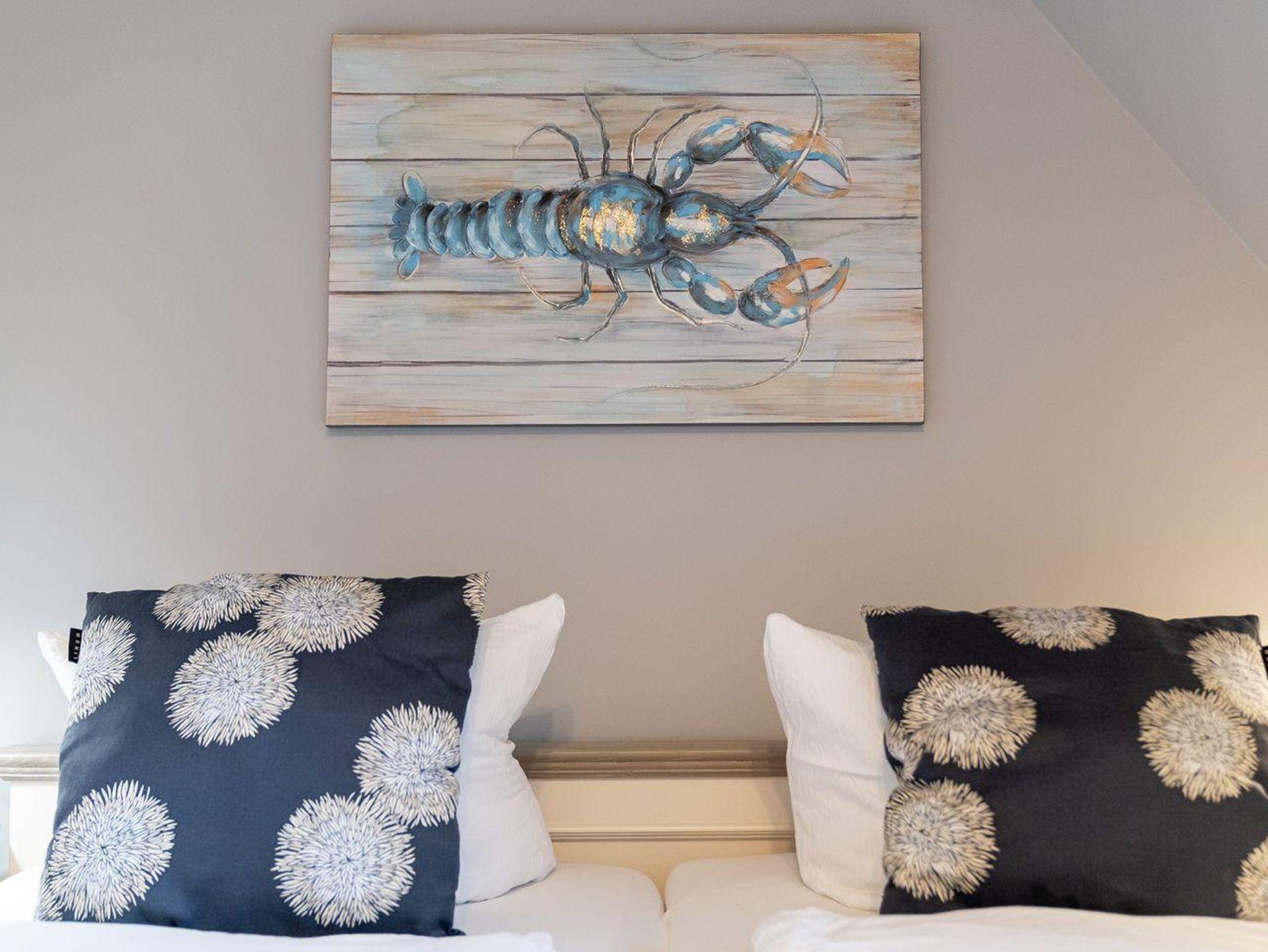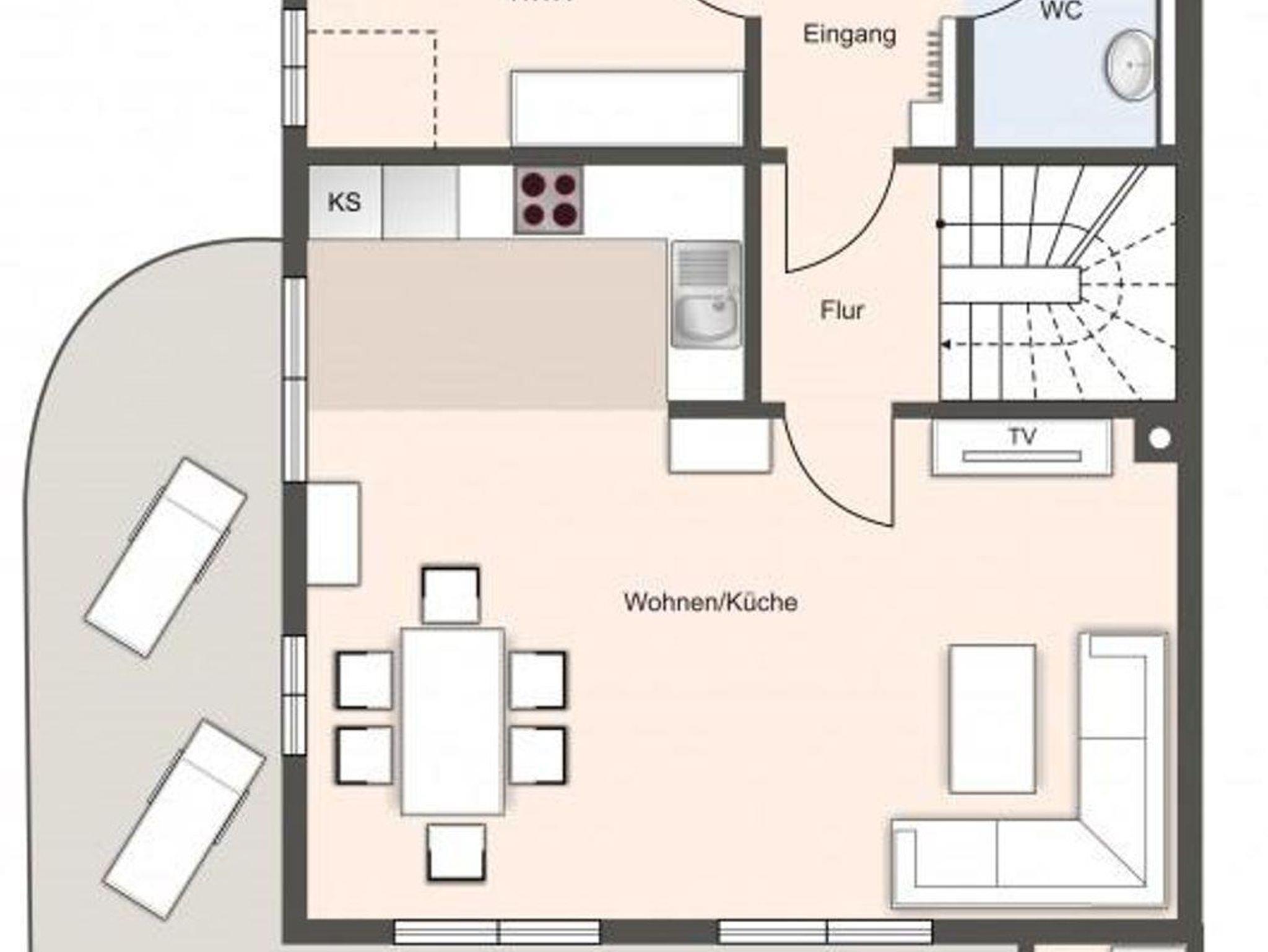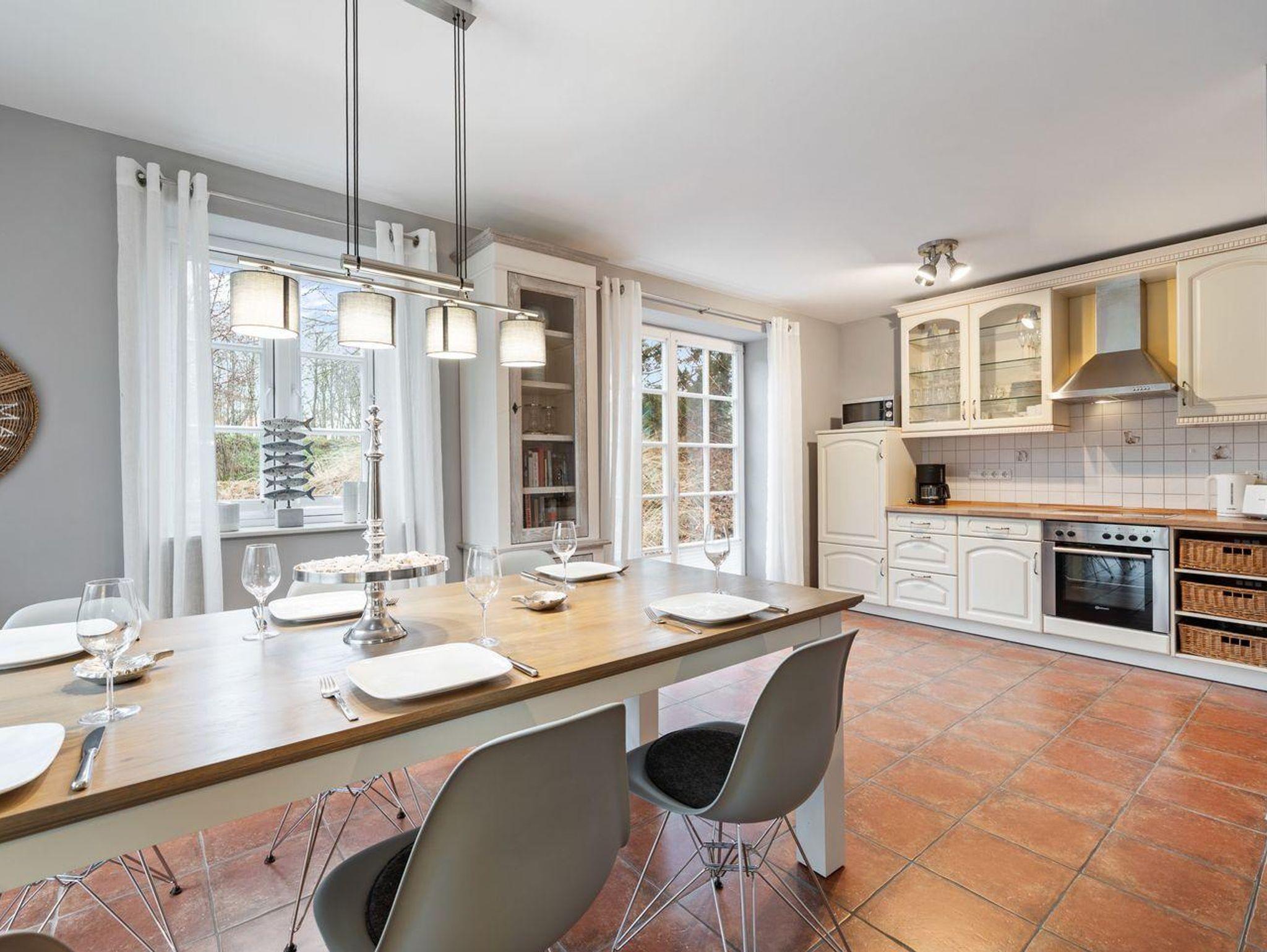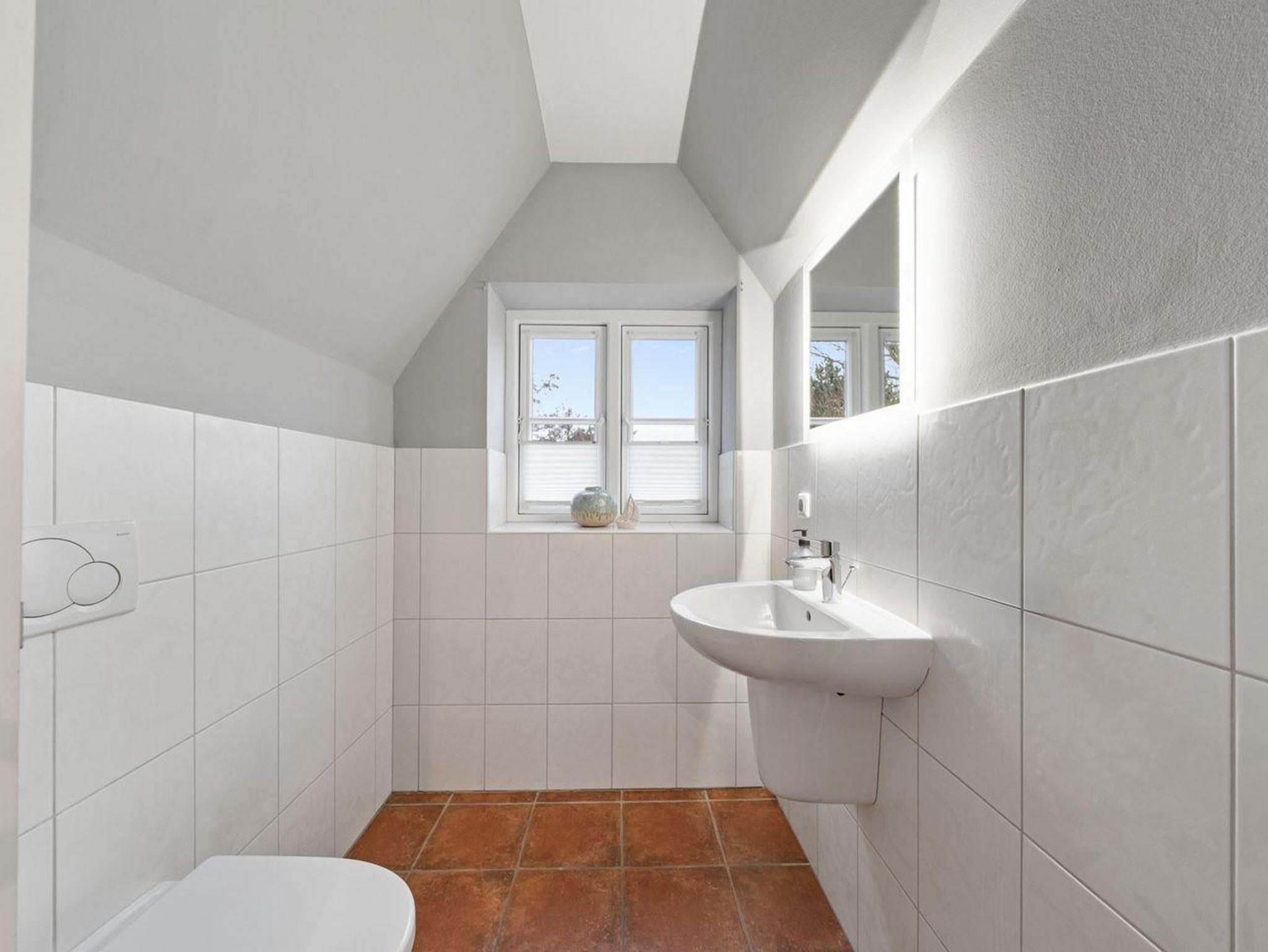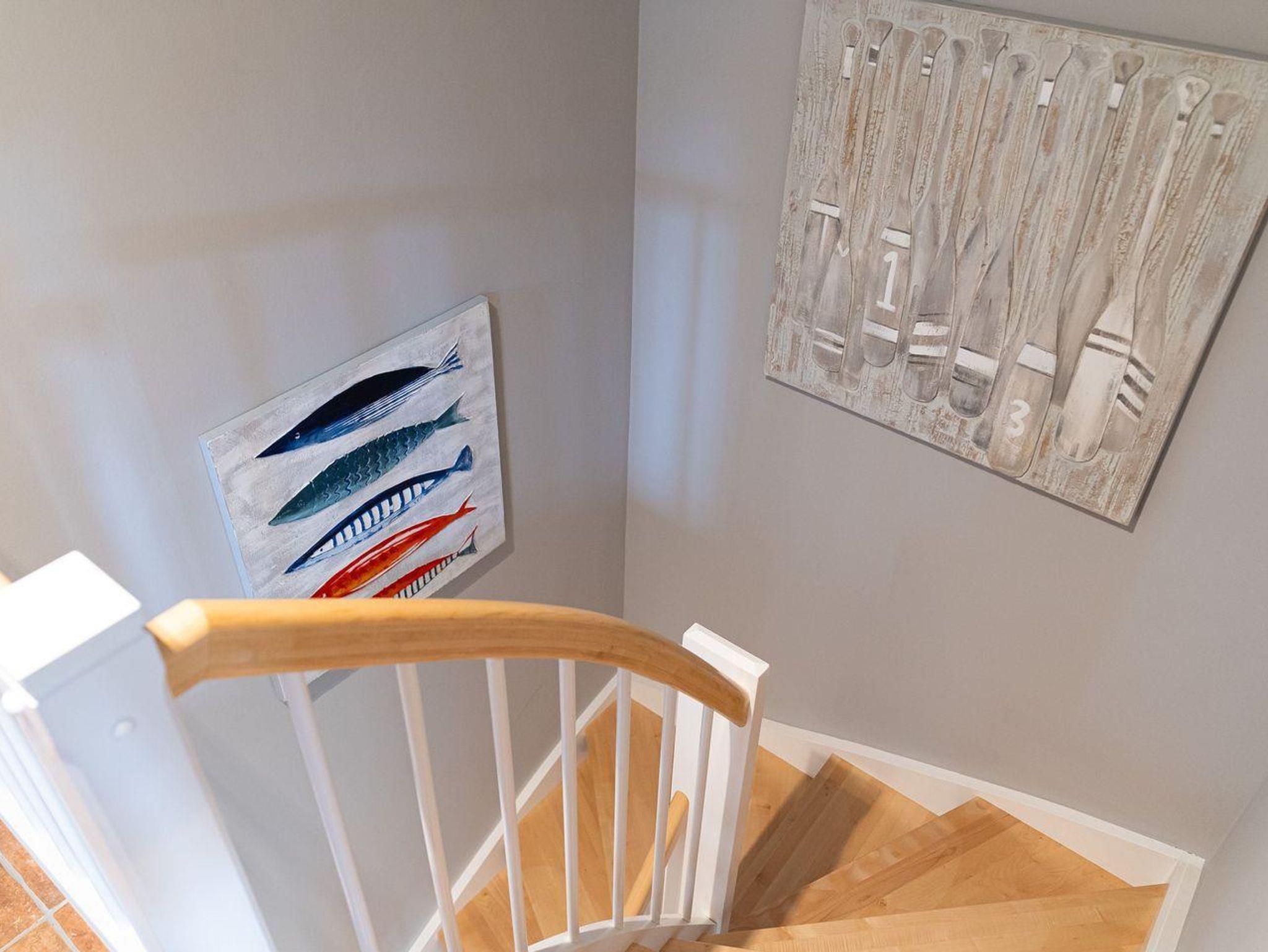 Im Erdgeschoss befindet sich der wunderschöne Wohnraum mit einem gemütlichen Essbereich und Zugang zu 2 Terrassen. Die offene Wohnküche ist mit allen wichtigen Geräten voll ausgestattet und lädt zum gemeinsamen Kochen ein. Ebenso ist im Erdgeschoss ein geräumiger Flur und ein Gäste WC. Im Obergeschoss befinden sich zwei Schlafzimmer. Eines mit einem Doppelbett und großem Kleiderschrank und ein weiteres mit 3 Schlafplätzen, einem Doppelbett und einem Einzelbett. Außerdem ist im Obergeschoss ein geräumiges Vollbad mit Eckbadewanne. Zusätzlicher Luxus im Obergeschoss ist ein weiteres Gäste-WC.