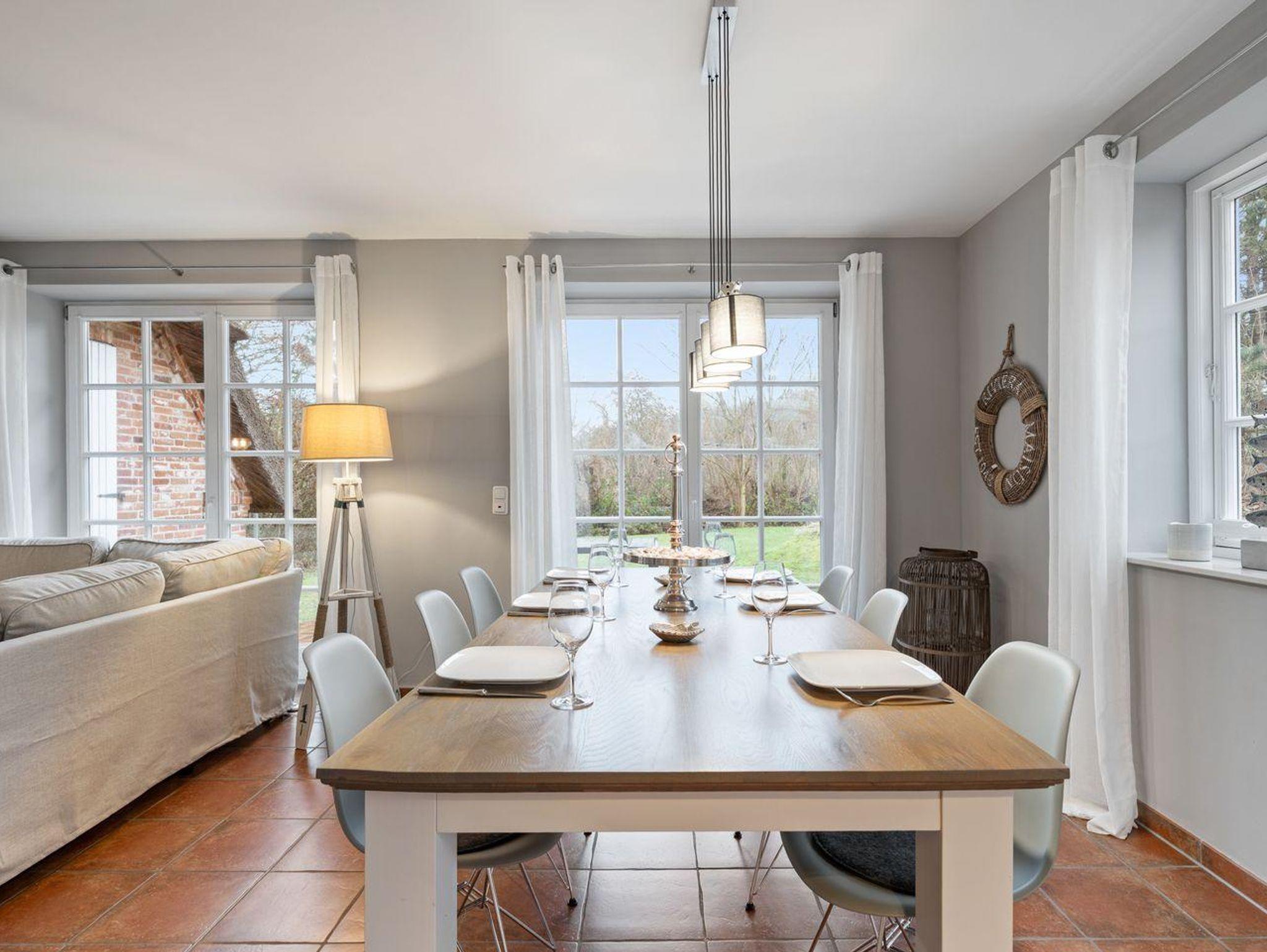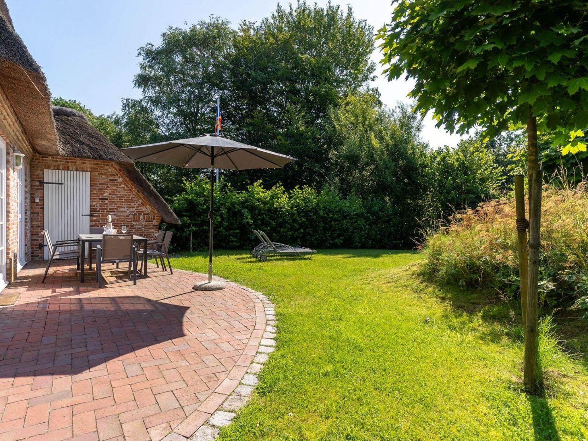 Das Reetdachhaus mit großem Garten und gemütlichen Terrassen befindet sich im Ortsteil Ording.