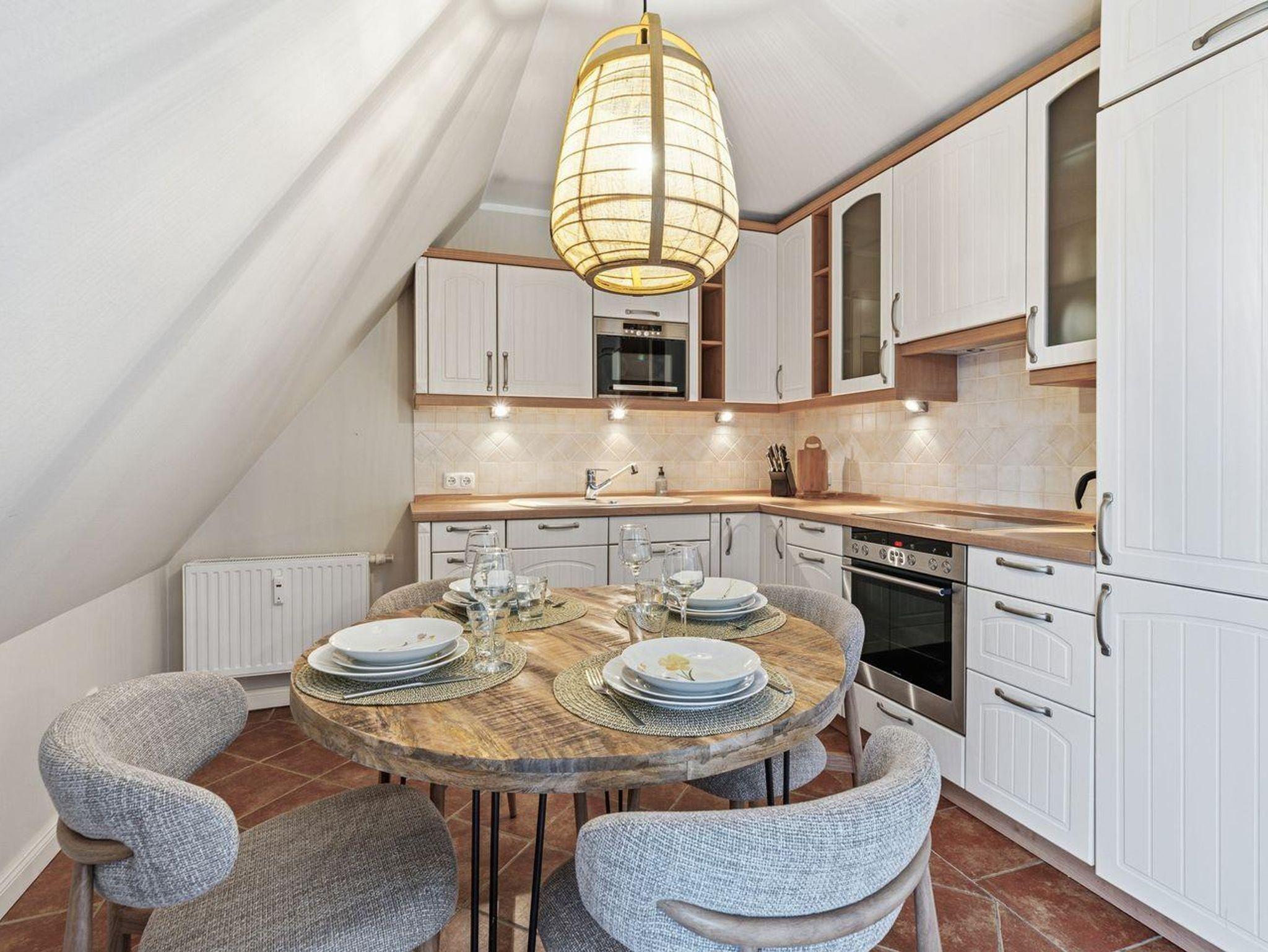 Die Landhausküche grenzt direkt am Wohnzimmer an. Das Duschbad bietet genügend Platz für Ihre Utensilien. Das Schlafzimmer mit einem 180er Doppelbett sorgt für ruhevolle Erholung. Ein weiteres Schlafzimmer befindet sich im Dachgeschoss.