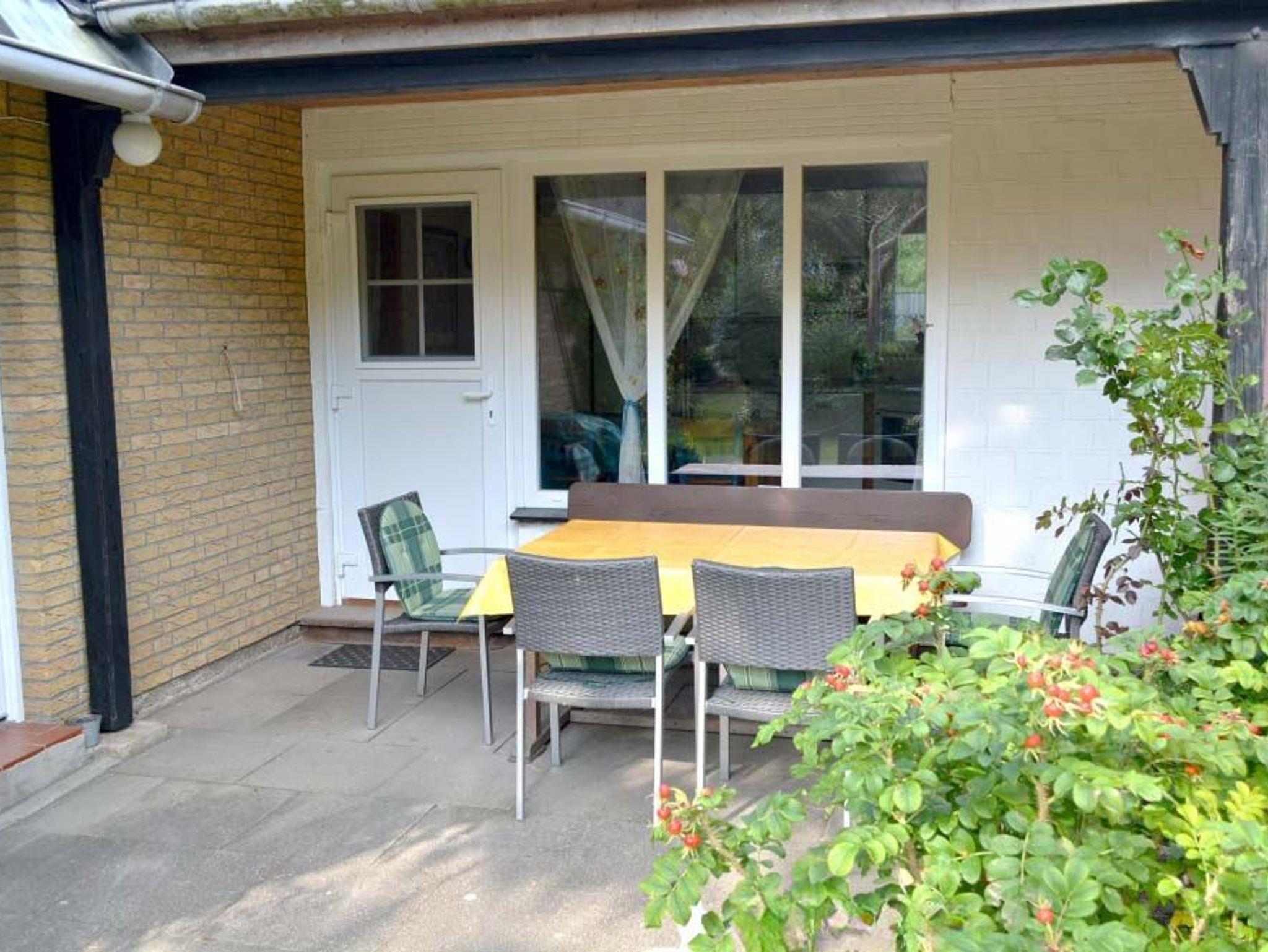 Terrasse: 2 Bänke, 2 Strandkörbe, 4 Stühle, halb überdacht, Liege, Süd- Ostlage, Tisch