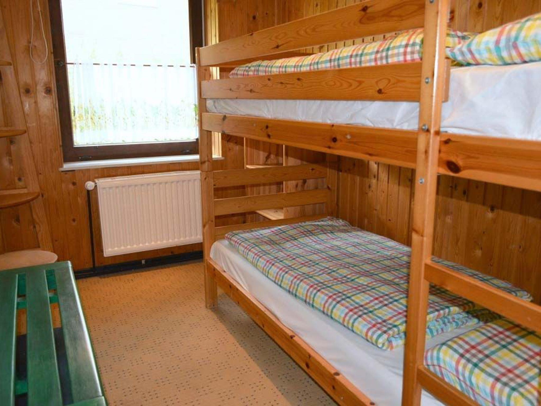 Schlafzimmer 2: Eckregal, Etagenbett, Garderobe, Hocker