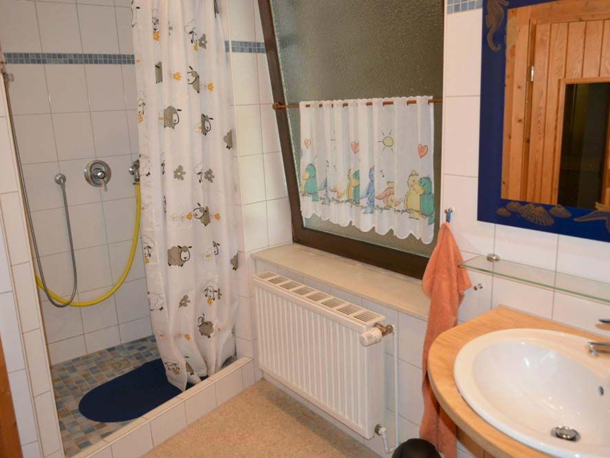 Bad 1: 2 Spiegel, Dusche, Regal, Sauna, Waschbecken, WC