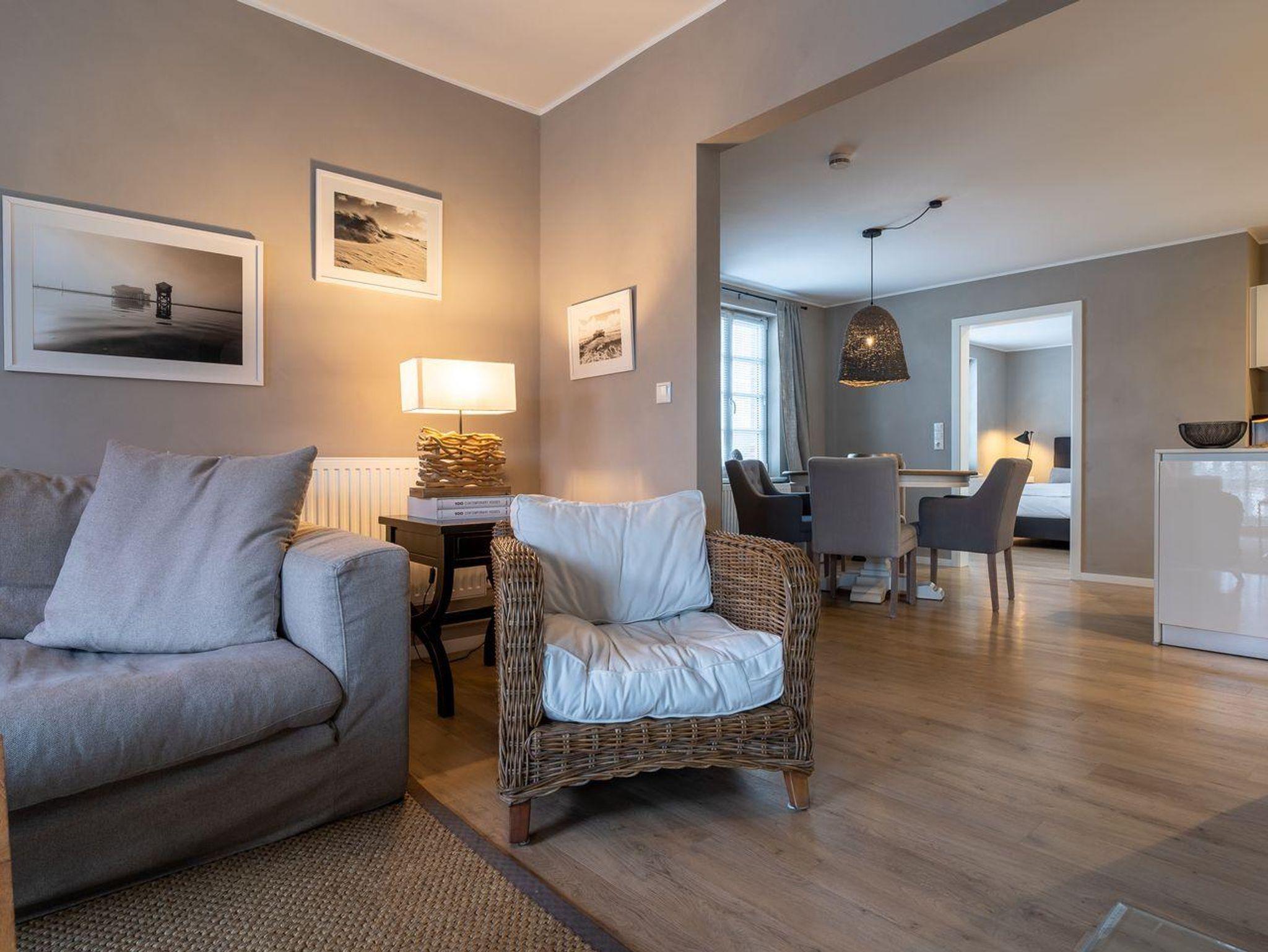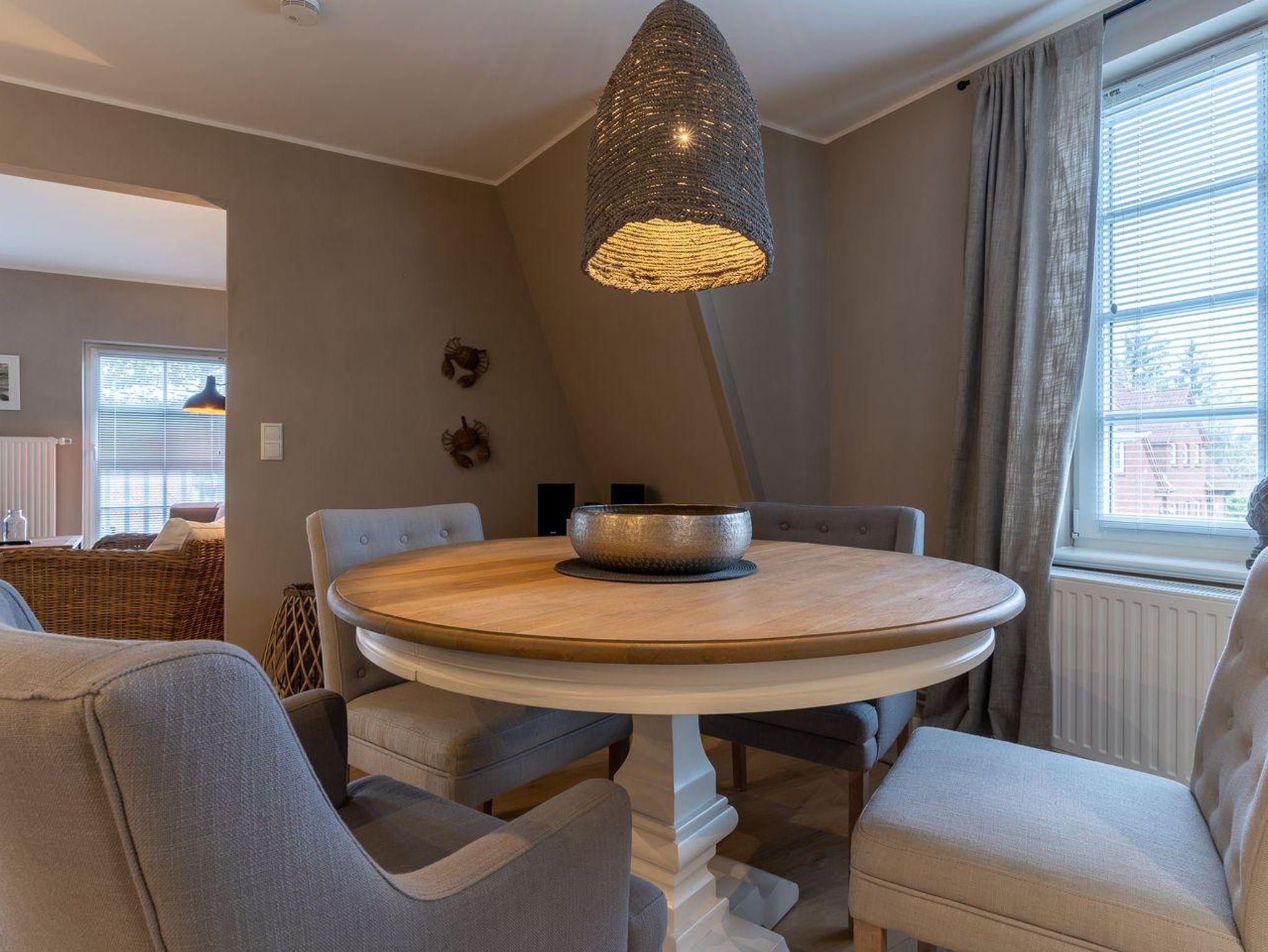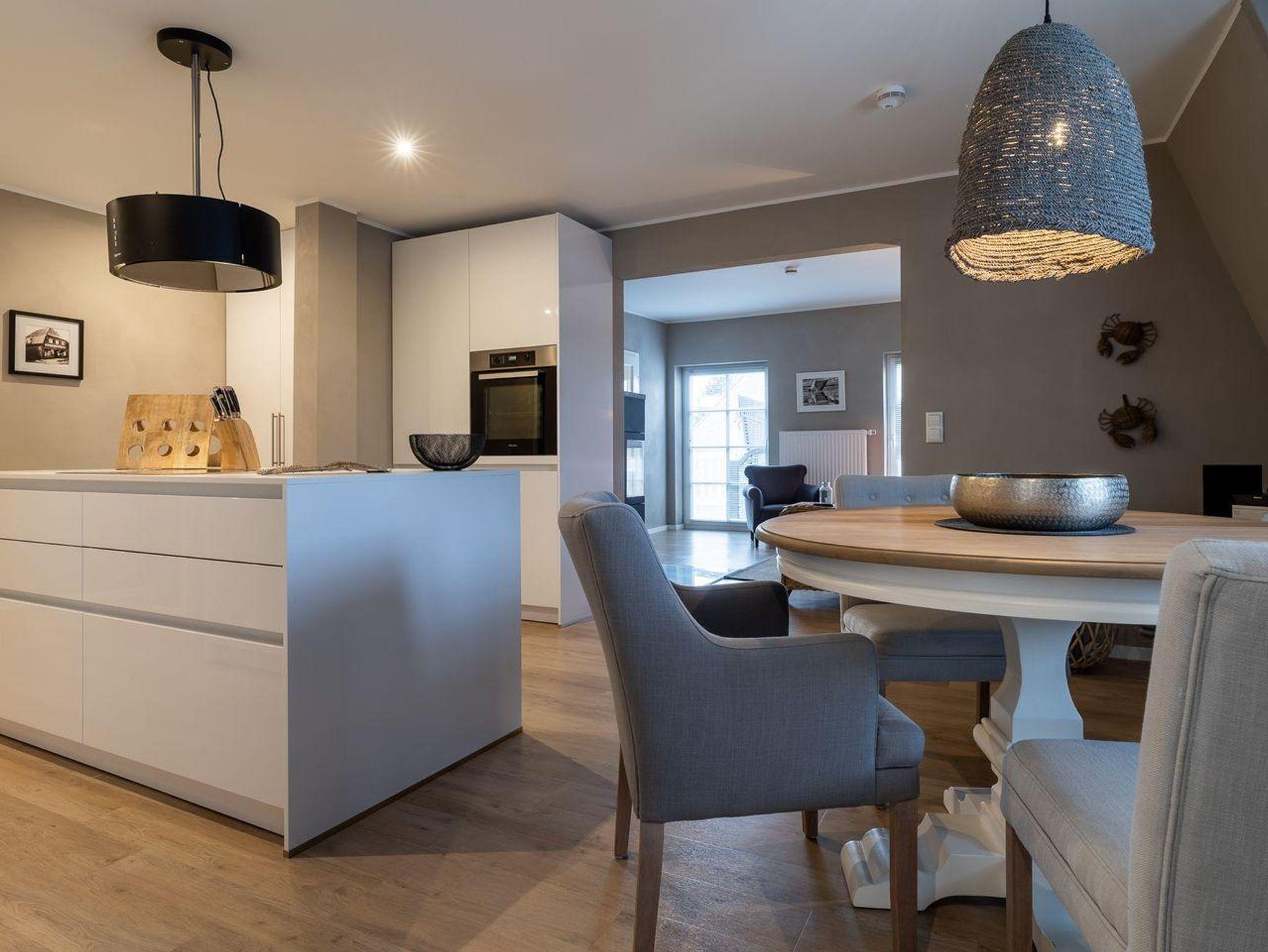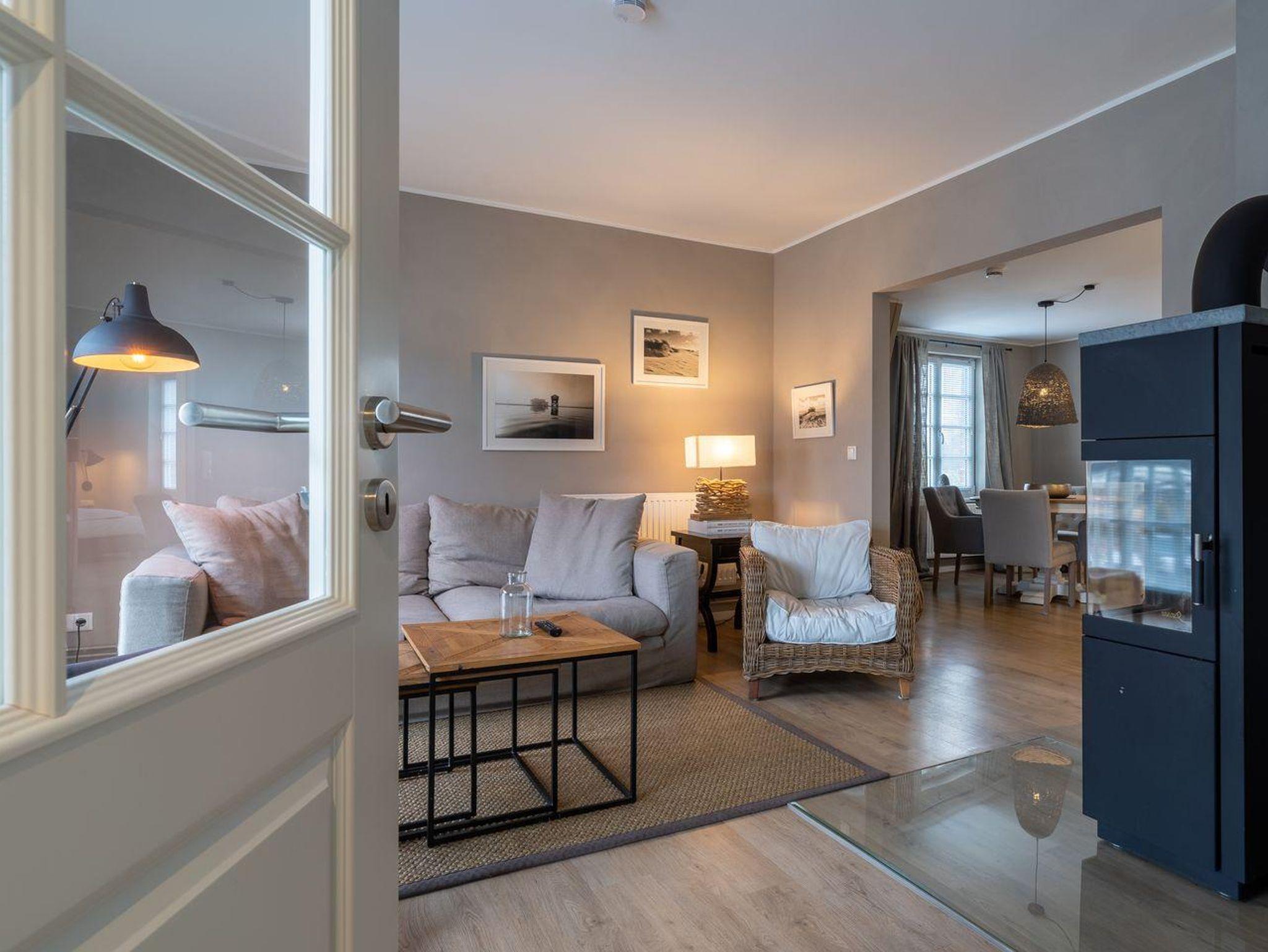 Das luxuriöse Koopmanns-Huus verfügt über ca. 110 m² Wohnfläche und bietet Platz für 4 Personen. In der ersten Etage, die über eine großzügige Außenholztreppe zu erreichen ist, befindet sich der lichtdurchflutete Wohnraum mit TV, Kamin, einer offenen Küche mit Küchenblock sowie einen stilvollen Essbereich. Die Küche ist mit hochwertigen Elektrogeräten ausgestattet und bildet mit seinem angrenzenden Wohnraum das Herzstück des Appartements. Die Wohn- und Schlafräume sind mit exklusiven Möbeln von Riviera Maison ausgestattet. An den Wohnbereich schließen sich ein Windfang mit Garderobe und ein mit edlen Granitfliesen und Fußbodenheizung ausgestattetes Duschbad an. Die Wohnung verfügt über einen geschmackvollen Dekorholzfußboden. Die beiden Schlafzimmer, mit jeweils einem Boxspring-Doppelbett sind ebenfalls mit TV ausgestattet. Ein hochwertiges Schranksystem gewährt Ihnen hinreichend Ablageflächen. Darüber hinaus befindet sich im Appartement ein weiteres geräumiges Vollbad, das mit Regendusche, Badewanne, Urinal und einer Infrarot-Sauna ausgestattet ist. Dieses wunderschön eingerichtete Appartement lässt keine Wünsche offen und bringt Sie sofort in Urlaubsstimmung. Das Grundstück ist im Herzstück des Dorfes gelegen. Das Appartement bietet einen eigenen Stellplatz und einen großzügigen Balkon mit schützendem Windfang. Aus dem Strandkorb heraus überblicken Sie das Anwesen, das mit heimischen Pflanzen, Obstbäumen und einer Düne angelegt ist. Carpe Diem!