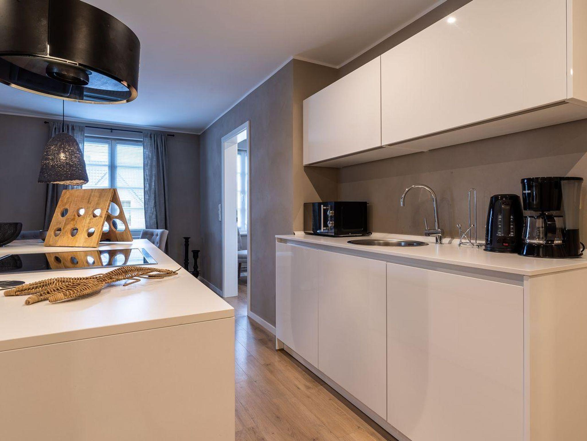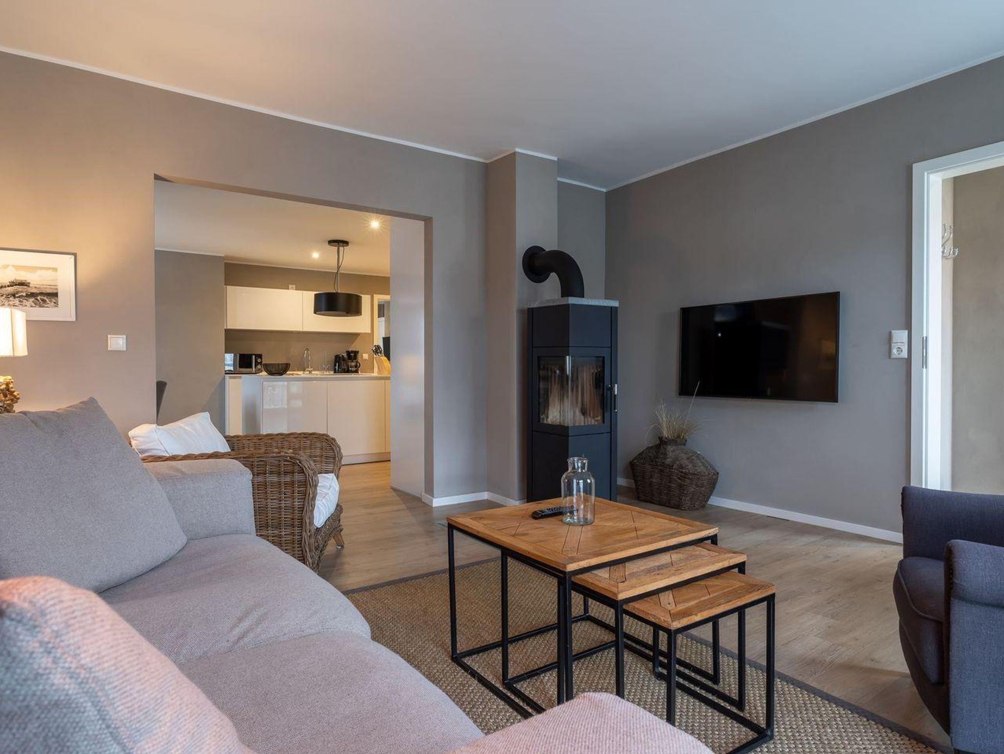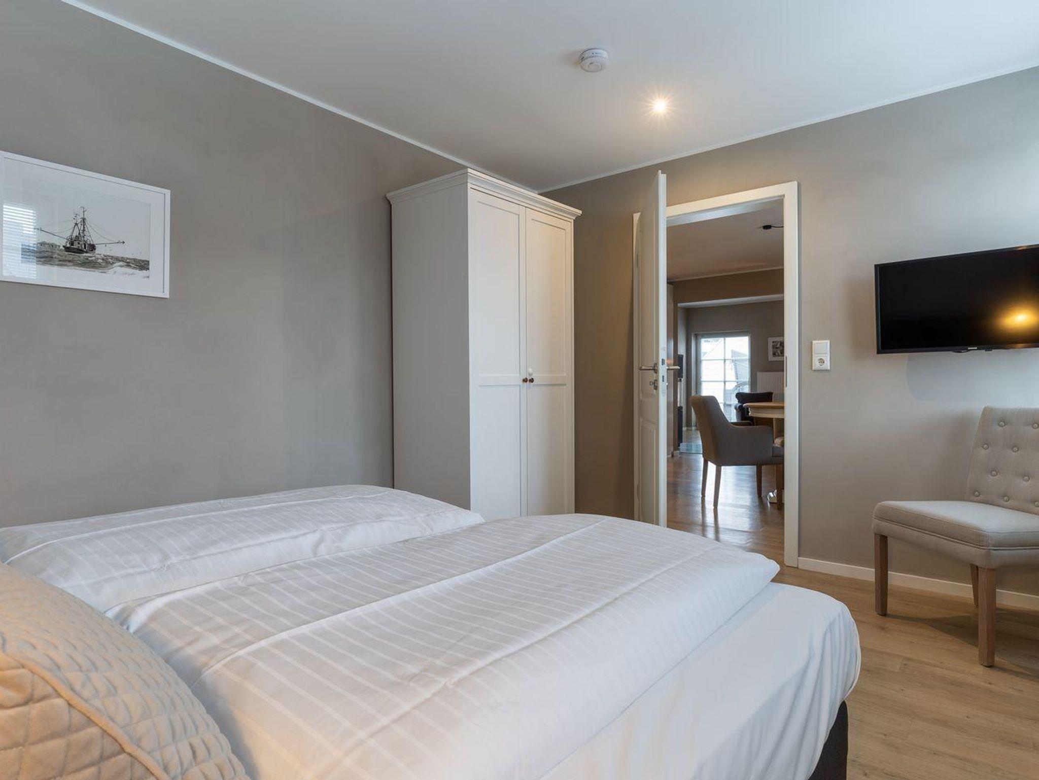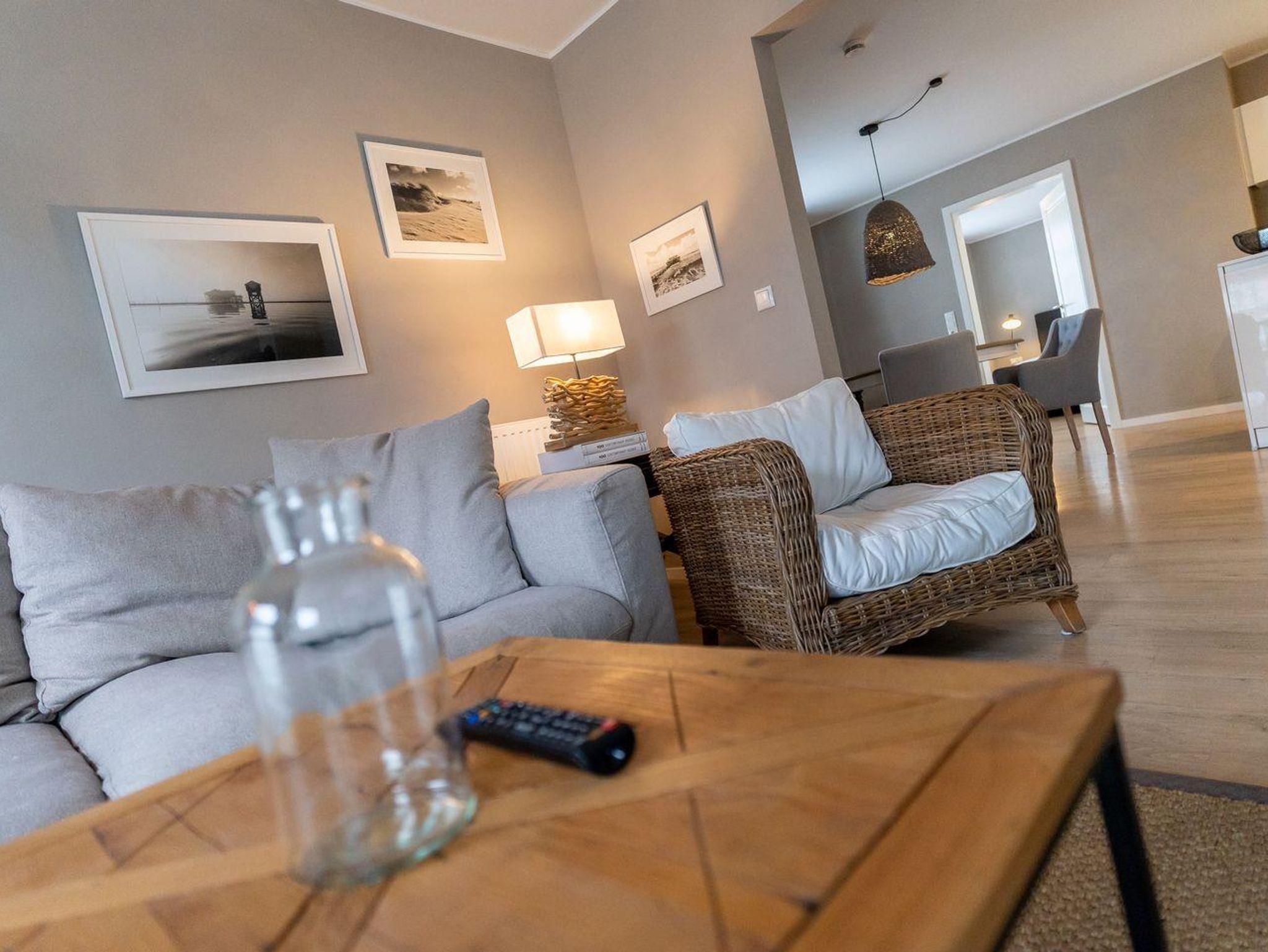Das luxuriöse Koopmanns-Huus verfügt über ca. 110 m² Wohnfläche und bietet Platz für 4 Personen. In der ersten Etage, die über eine großzügige Außenholztreppe zu erreichen ist, befindet sich der lichtdurchflutete Wohnraum mit TV, Kamin, einer offenen Küche mit Küchenblock sowie einen stilvollen Essbereich. Die Küche ist mit hochwertigen Elektrogeräten ausgestattet und bildet mit seinem angrenzenden Wohnraum das Herzstück des Appartements. Die Wohn- und Schlafräume sind mit exklusiven Möbeln von Riviera Maison ausgestattet. An den Wohnbereich schließen sich ein Windfang mit Garderobe und ein mit edlen Granitfliesen und Fußbodenheizung ausgestattetes Duschbad an. Die Wohnung verfügt über einen geschmackvollen Dekorholzfußboden. Die beiden Schlafzimmer, mit jeweils einem Boxspring-Doppelbett sind ebenfalls mit TV ausgestattet. Ein hochwertiges Schranksystem gewährt Ihnen hinreichend Ablageflächen. Darüber hinaus befindet sich im Appartement ein weiteres geräumiges Vollbad, das mit Regendusche, Badewanne, Urinal und einer Infrarot-Sauna ausgestattet ist. Dieses wunderschön eingerichtete Appartement lässt keine Wünsche offen und bringt Sie sofort in Urlaubsstimmung. Das Grundstück ist im Herzstück des Dorfes gelegen. Das Appartement bietet einen eigenen Stellplatz und einen großzügigen Balkon mit schützendem Windfang. Aus dem Strandkorb heraus überblicken Sie das Anwesen, das mit heimischen Pflanzen, Obstbäumen und einer Düne angelegt ist. Carpe Diem!