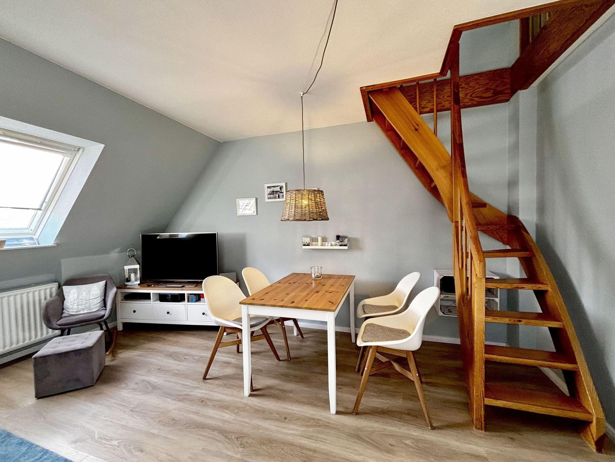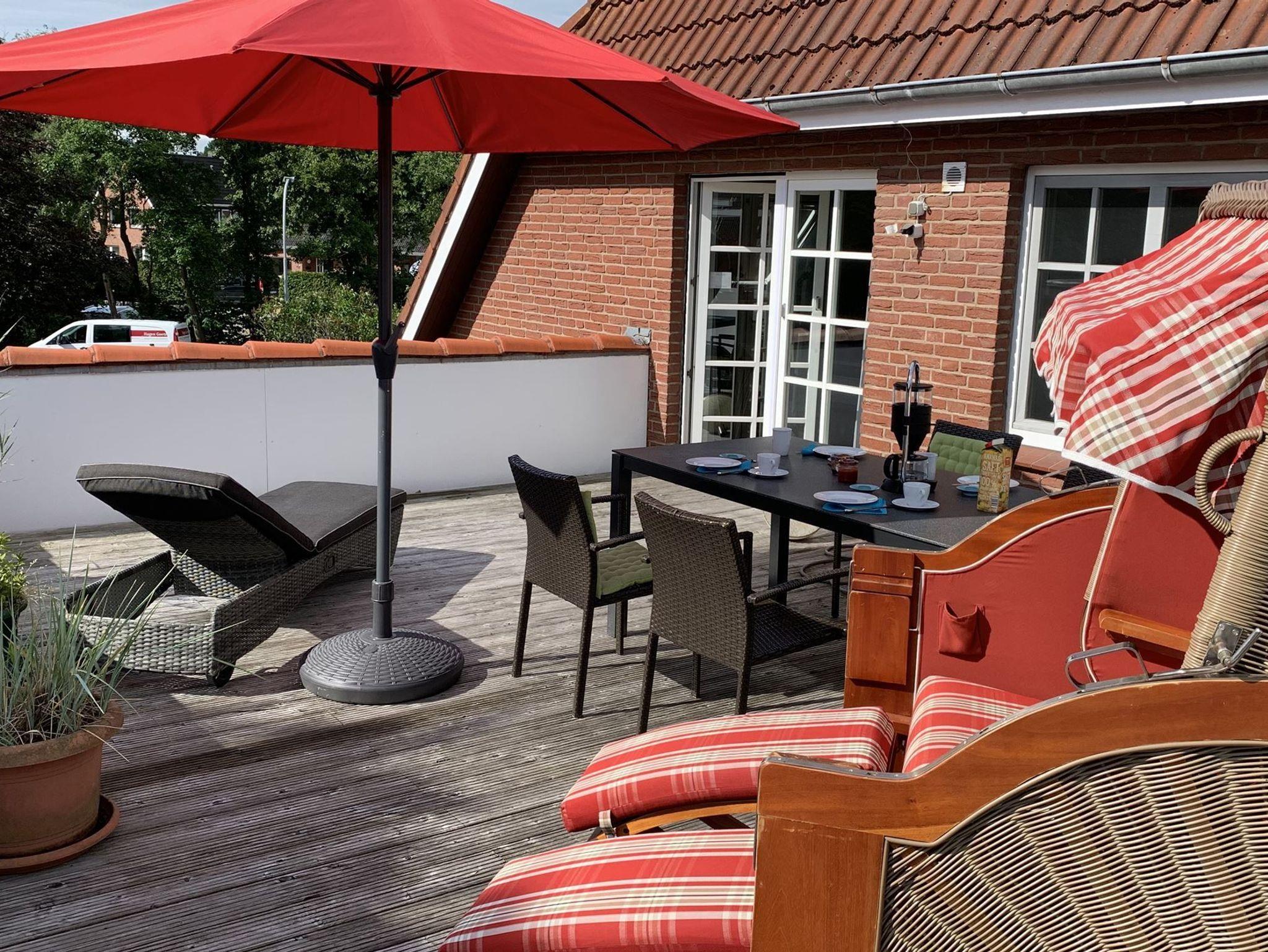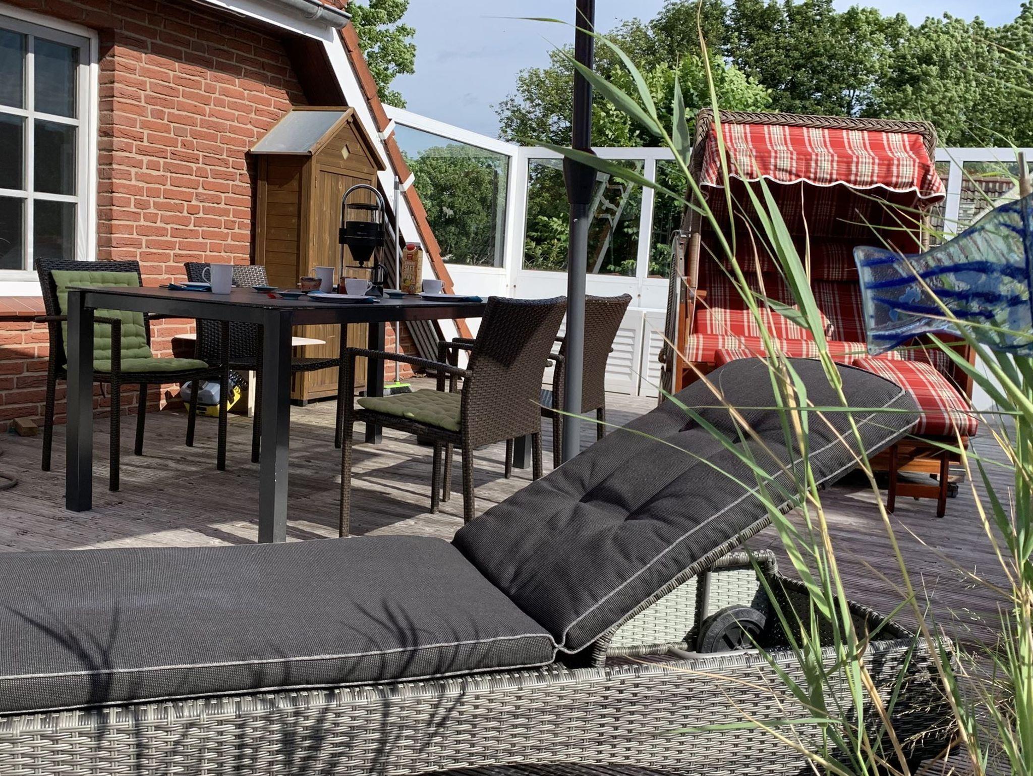 Die liebevoll gestaltete Ferienwohnung Sünnkieker mit ihrer 40 qm großen, sonnigen Dachterrasse befindet sich im Herzen des Ortsteils Dorf, ruhig gelegen, aber doch mittendrin.