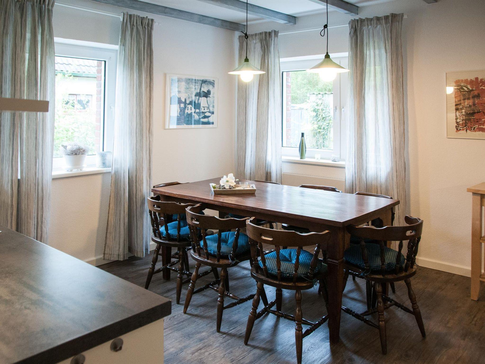 Die große Essküche lädt zum gemütlichen Abendessen in großer Runde oder zum ausgiebigen Frühstück ein. Die Küchenzeile ist voll ausgestattet und bietet Gelegenheit zum Experimentieren mit nordischen Spezialitäten. Für das Spülen nach dem Essen gibt es eine Spülmaschine – Sie haben ja Urlaub!