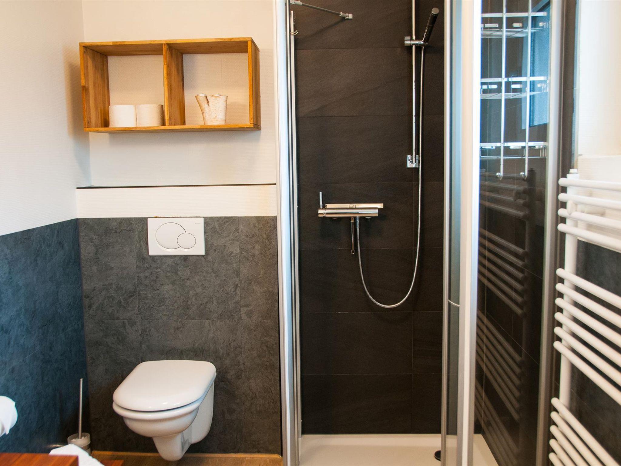 Die beiden modernen Duschbäder sind mit ebenerdigen Duschbereichen und vielen Ablagemöglichkeiten für Ihre Utensilien ausgestattet. Damit es bei der nordischen Kühle keine kalten Füße gibt, haben die Bäder eine Fußbodenheizung.