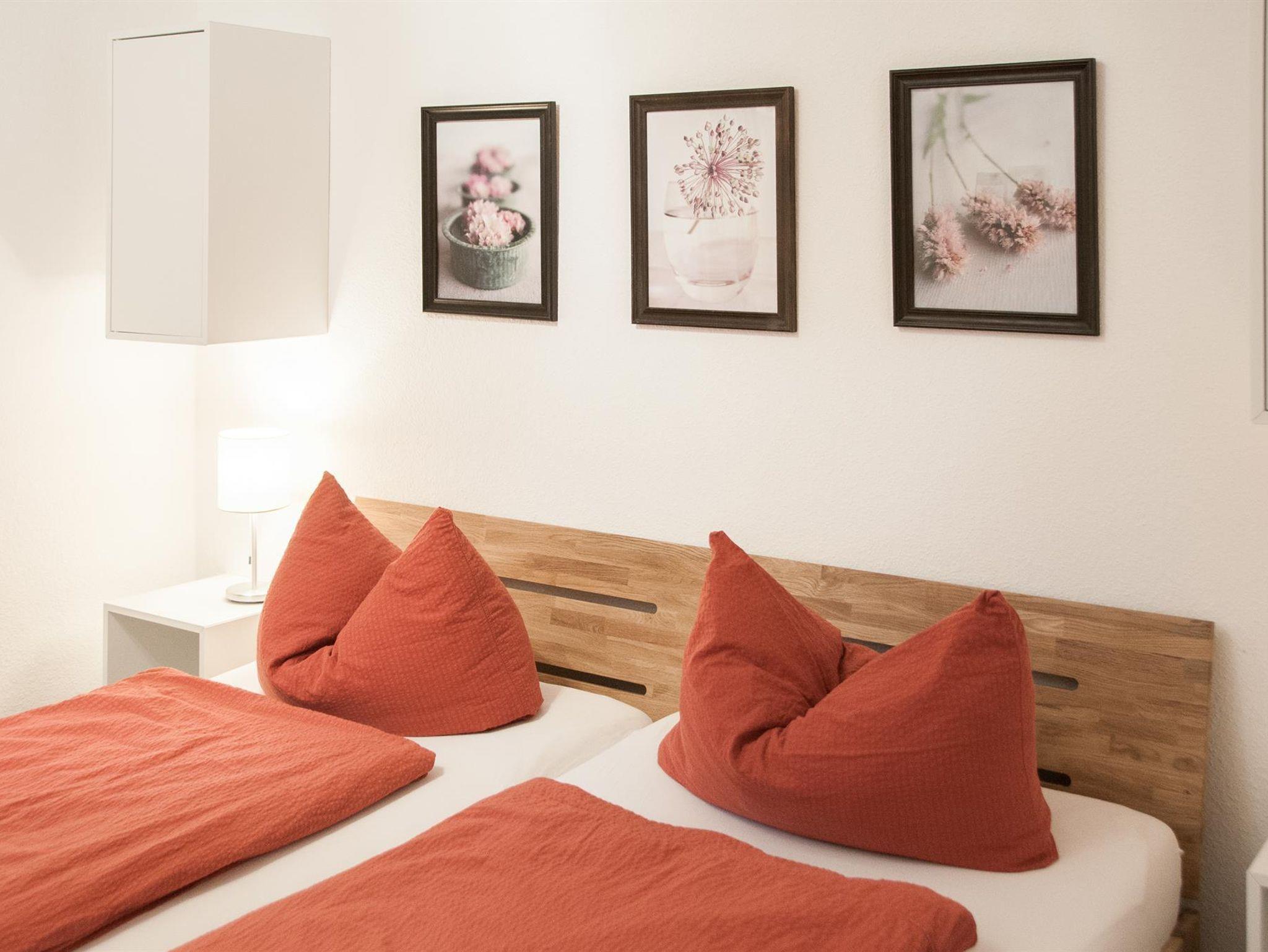 Ein Schlafraum mit Doppelbett mit 2 Einzelmatratzen 90 x 200 cm