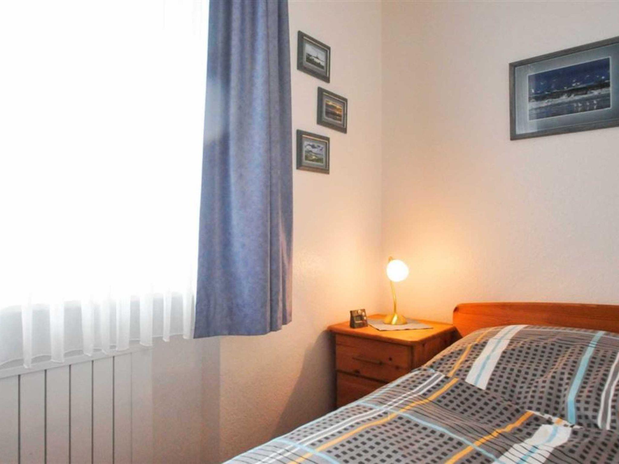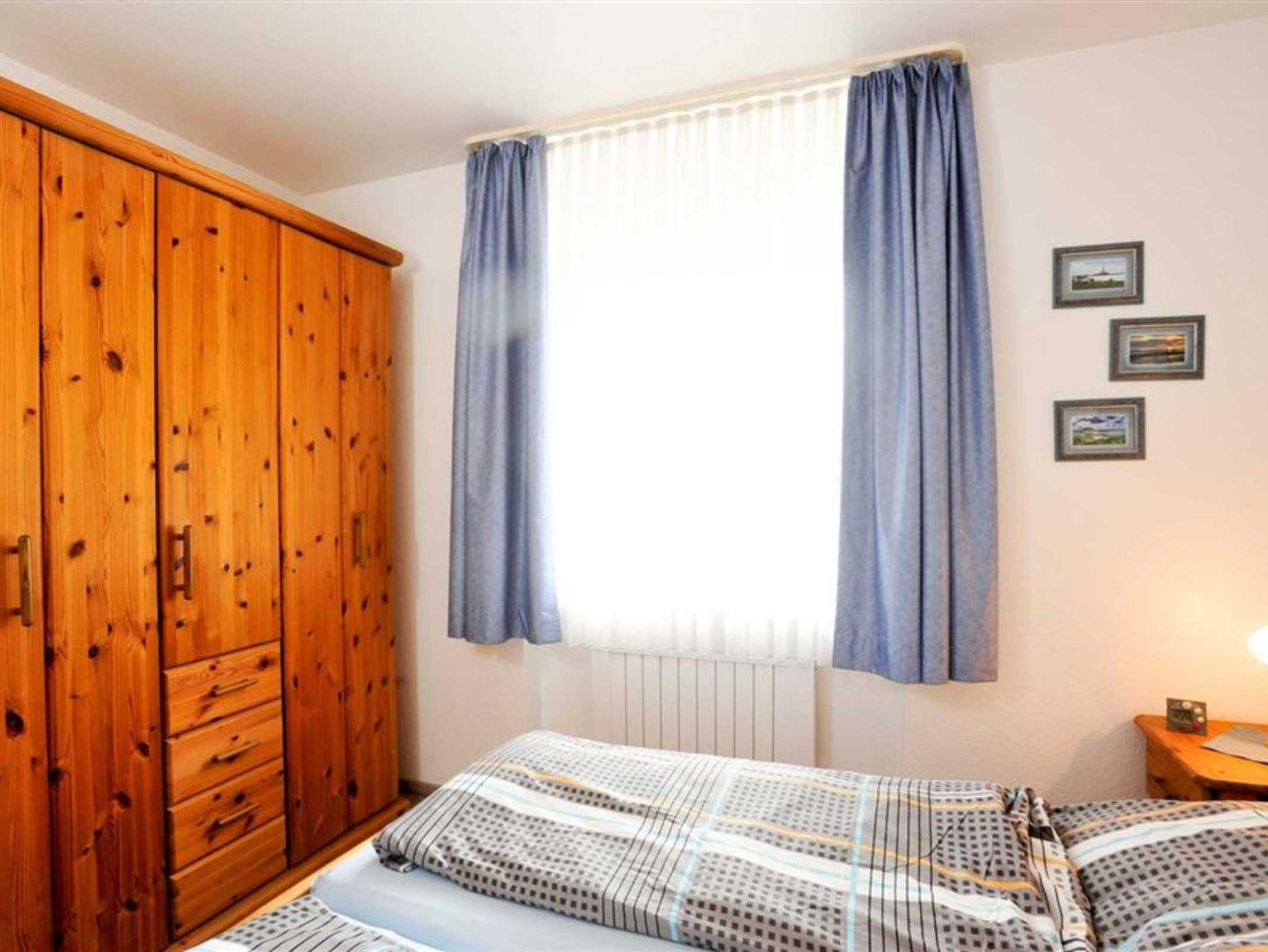 Schlafzimmer mit Doppelbett (2x 80x200cm), elektrischer Heizung und Kleiderschrank.