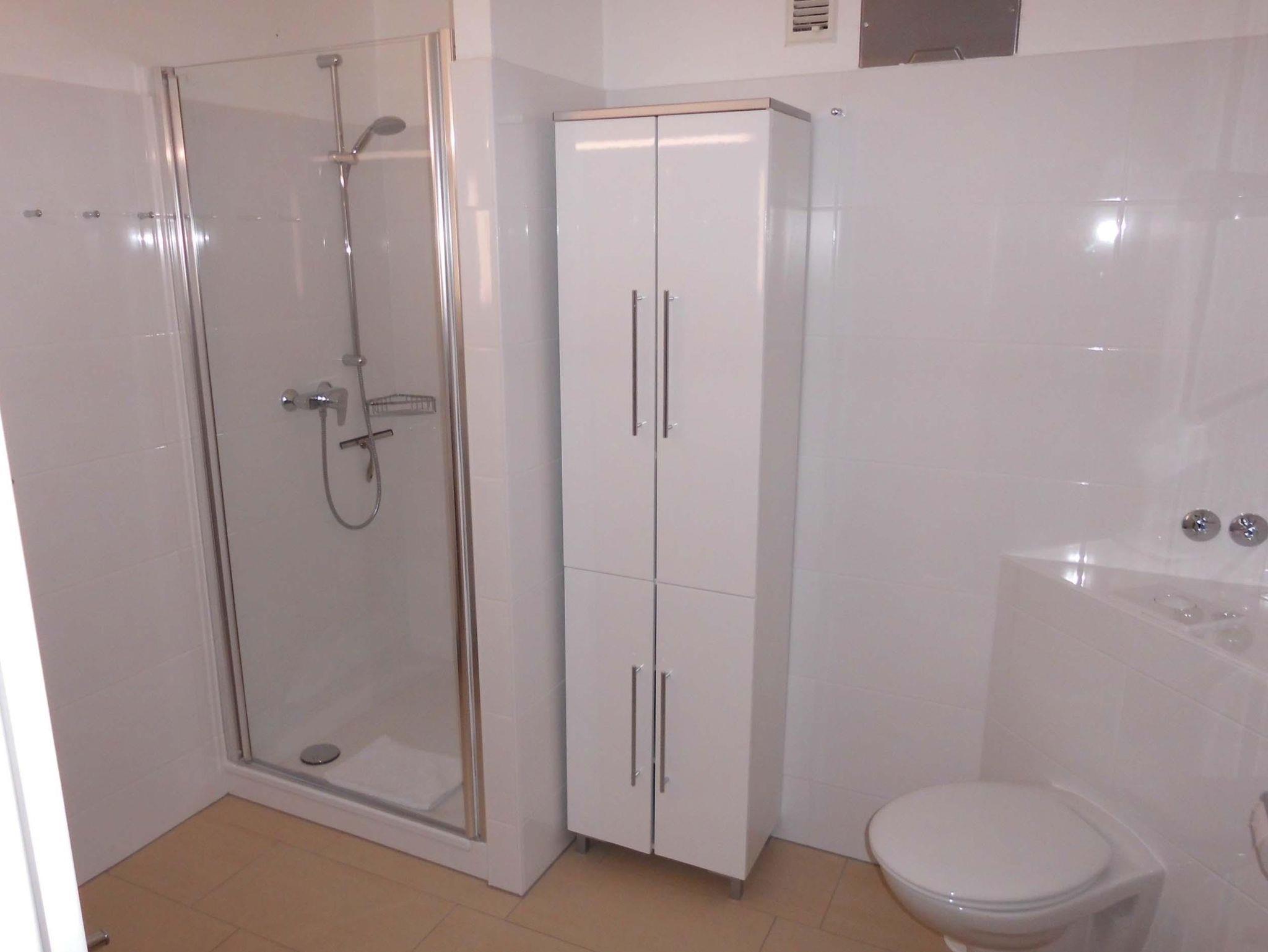 App.Nr. 70, Typ 6a, IV.OG., Nord-Westlage Schlafraum mit Doppelbett (1,60 m breit) und Einzelbett, Wohn/Schlafraum mit 2 Wandschrankbetten, Laminatfußboden, Sitzecke, Essecke, Küchenzeile mit Geschirrspüler und Backofen, Dusche/WC, 2 x Kabel-TV, Durchwahltelefon, Balkon, Garagenstellplatz-Nr.70, Aufzug und Fahrradkeller, Rezeption, Brötchenservice, Schwimmbad, Sauna kostenpflichtig, kostenfreier Internetzugang (LAN1-Germania). Bettwäsche wird einmalig bei Einzug gestellt. Handtücher können gegen Gebühr entliehen werden. NICHTRAUCHERWOHNUNG