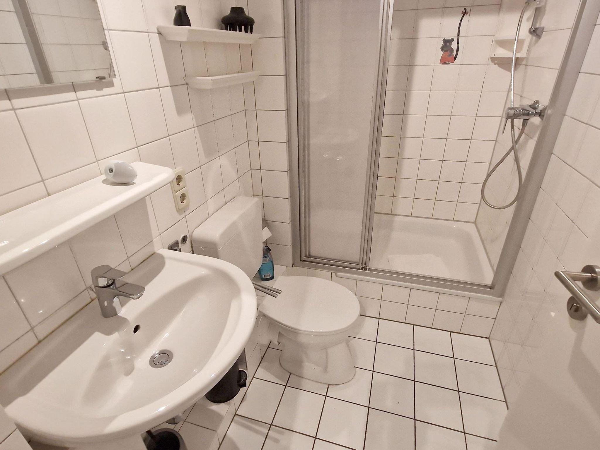 In einer Nische gibt es eine Einbauküche mit einem 4-Platten-Herd, gleich um die Ecke vom Esstisch. Das Bad ist schön hell gefliest. Nachts ruhen Sie auf dem Schrankdoppelbett im Wohnzimmer oder im Doppelbett im Schlafzimmer, tagsüber entspannen Sie auf dem Balkon in Nord-West-Ausrichtung. Duschbad. Nichtraucherdomizil.