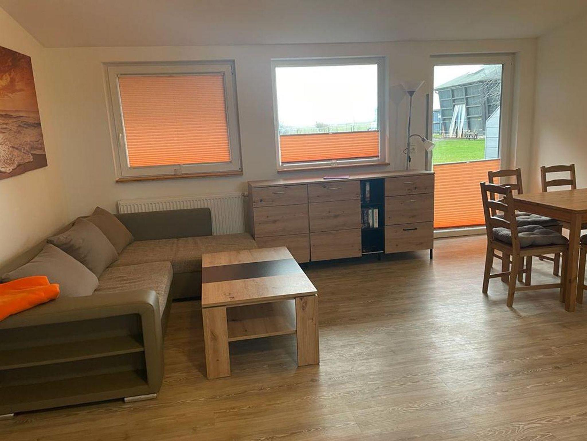 Wohnraum mit Schlafsofa mit Essbereich mit SAT-TV, offene Küche