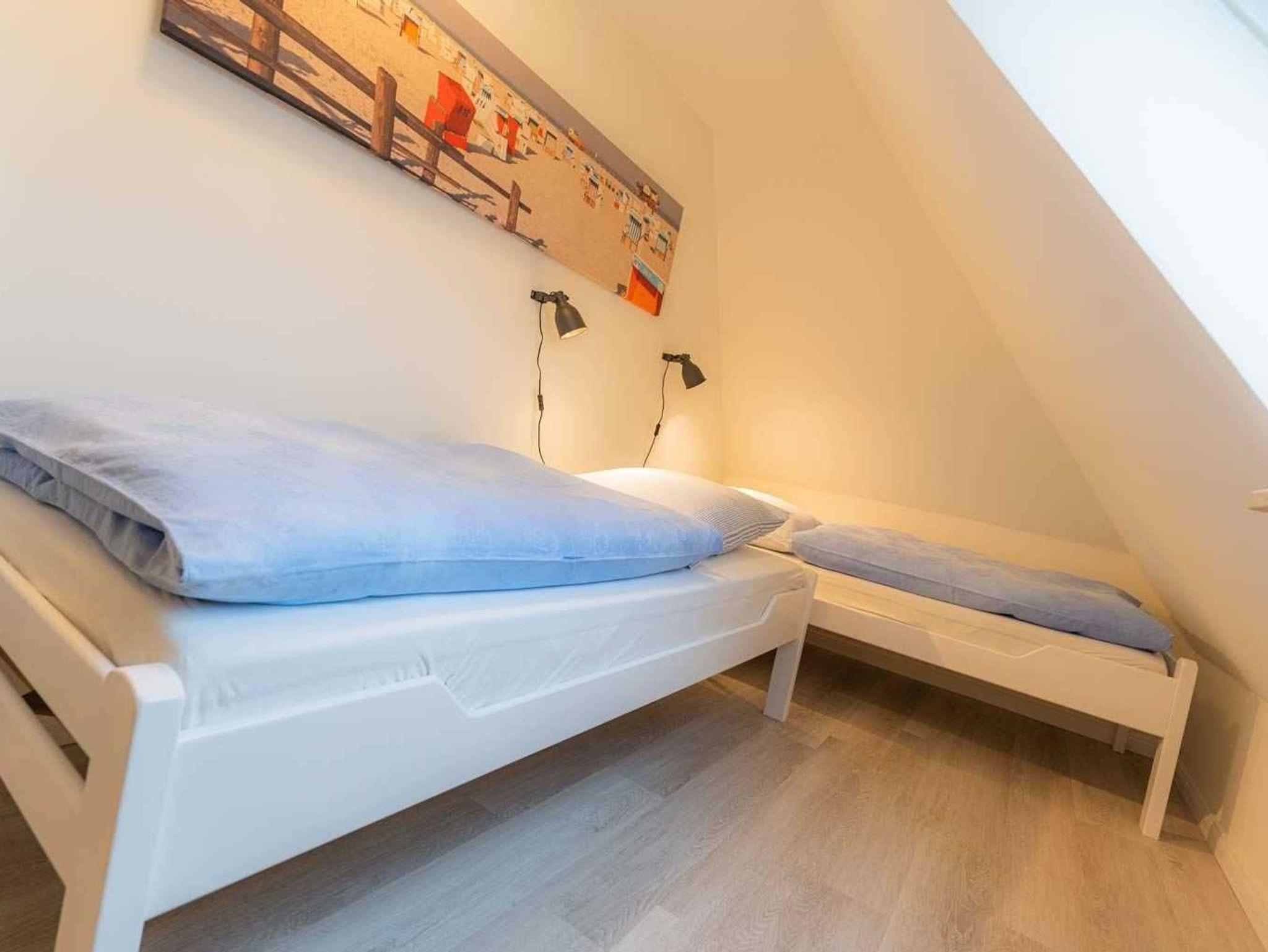 Schlafzimmer mit 2 Einzelbetten (je 90x200cm) und Kleiderschrank.