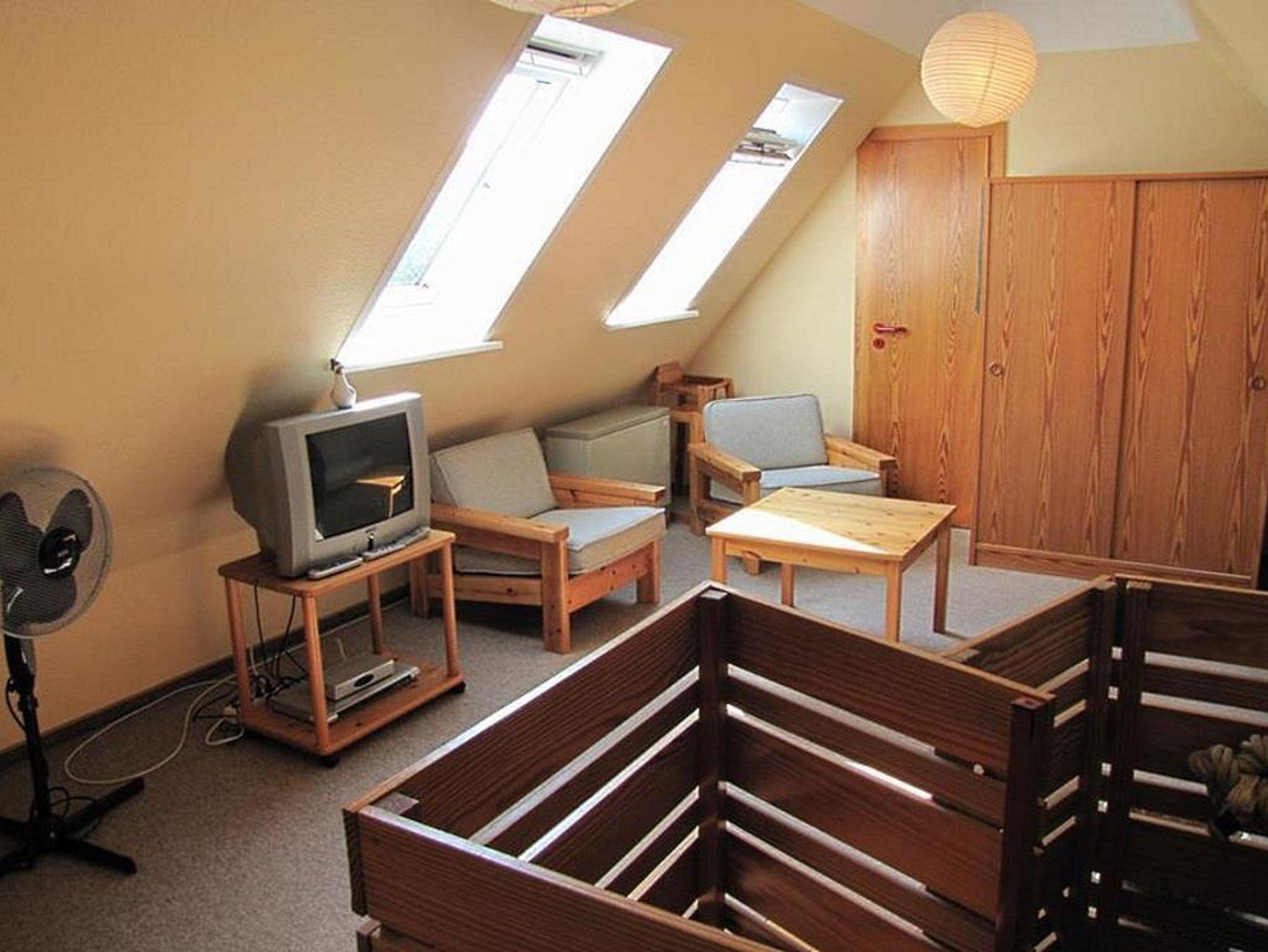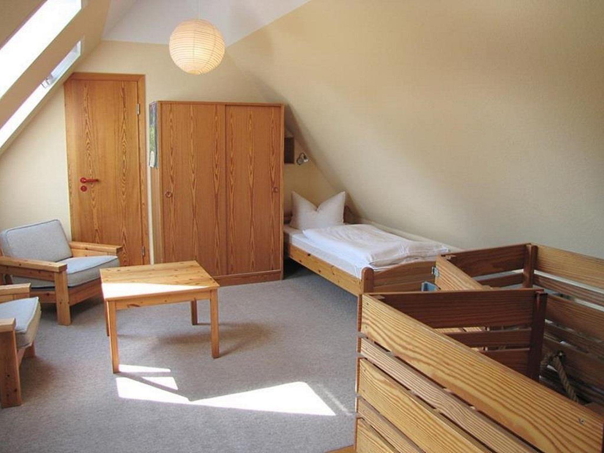 Die Wohnung Anka im Obergeschoß verteilt sich über 2 Etagen auf 85qm. Im Obergeschoß finden Sie einen Wohnschlafraum mit Schlafcouch, Sitz- und Essecke, dänischem Kaminofen, sowie eine sonnige Fensterfront mit Ausgang zum Balkon vor. Die Ferienwohnung ist im skandinavischen Stil mit einer offenen Küche, einem Tresenbereich, Insektenschutzfenstern, einem Duschbad, sowie einem separatem WC ausgestattet. Ein Schlafzimmer mit einem Doppelbett lädt zum Schlummern ein. Ein weiterer Schlafraum mit 3 Einzelbetten und Kindergitter (ein Kinderbett wäre hier zusätzlich aufstellbar), einem Couchtisch und zwei Sesseln ist über die Wendeltreppe im Dachgeschoß erreichbar. Bettwäsche und Handtücher sind auf Anfrage mietbar.