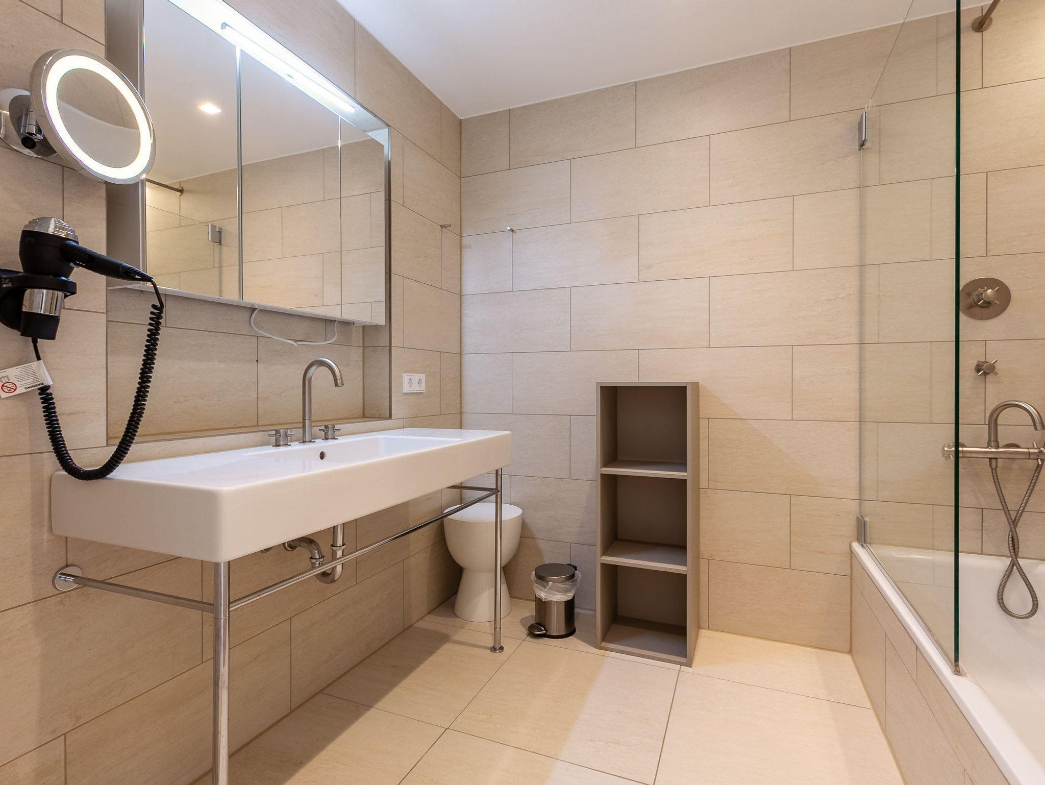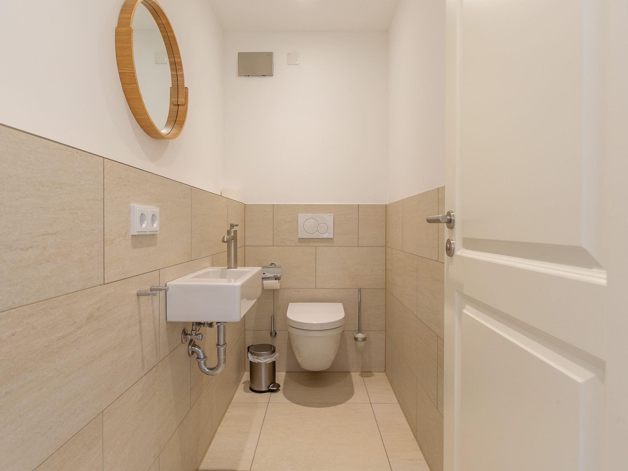 2. Badezimmer (Vollbad) mit Duschwanne, WC, Handtuchwärmer und Föhn. Separates WC im OG.
