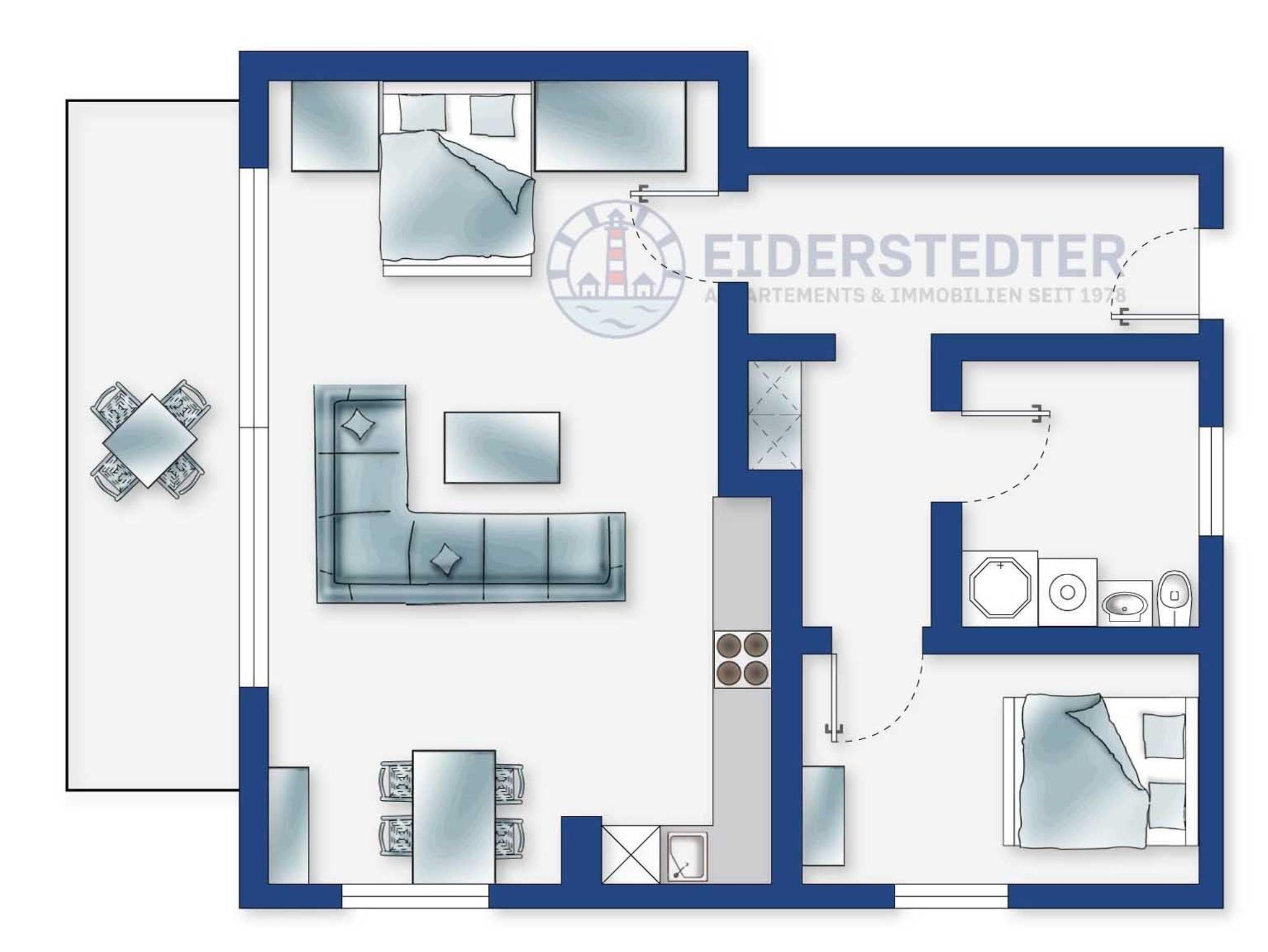Gemütliche 2-Zimmer-Ferienwohnung im Haus Westmarken mit ca. 48 m² auf 1 Ebene (EG) für bis zu 4 Personen. In ruhiger Lage an den Wiesen des Ortsteils Ording in St. Peter-Ording. Atmen Sie tief durch an diesem Rückzugsort zwischen Sandstrand und Marschwiesen. Ideal für einen erholsamen Familienurlaub an der Nordsee.