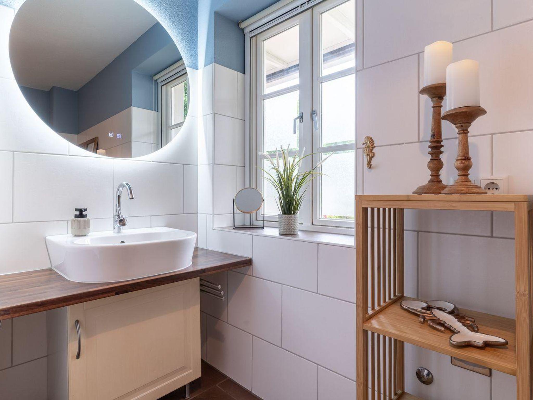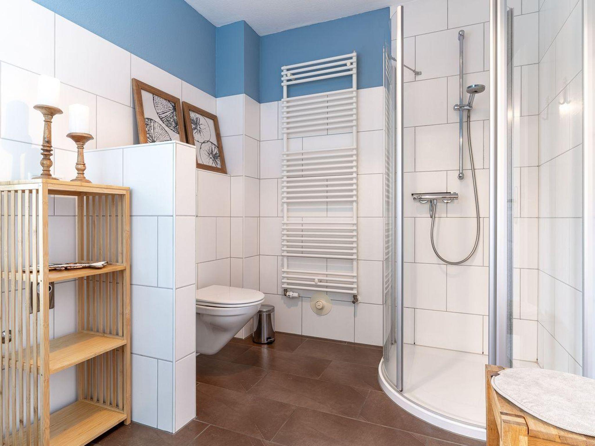 Um das Meersalz und den Sand aus den Haaren zu spülen, finden Sie im Bad eine ebenerdige Dusche vor. Für die angenehme Atmosphäre sorgt die Fußbodenheizung, sowie das erwärmte Handtuch.