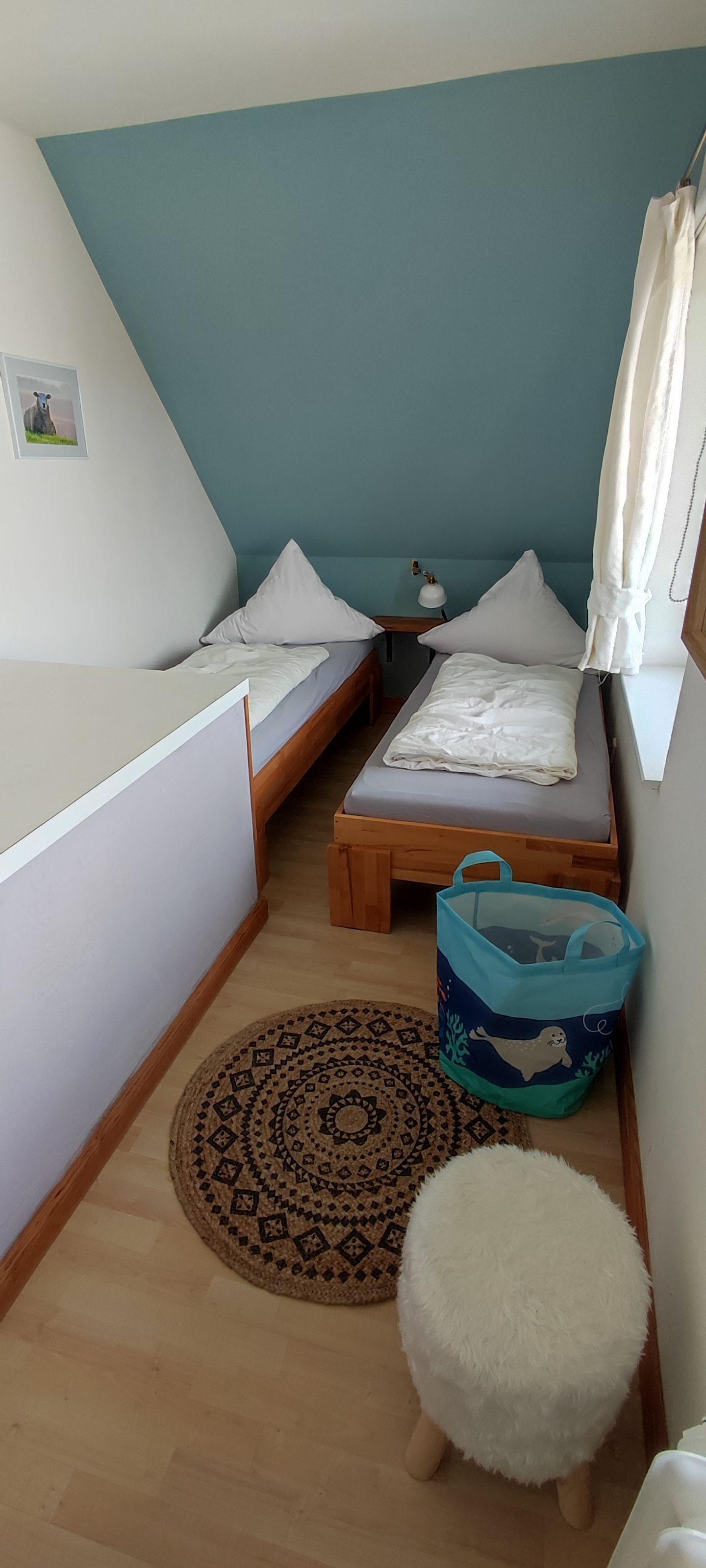 Das zweite Schlafzimmer hat zwei Einzelbetten und ein weiteres Bett steht im Zusatzzimmer.