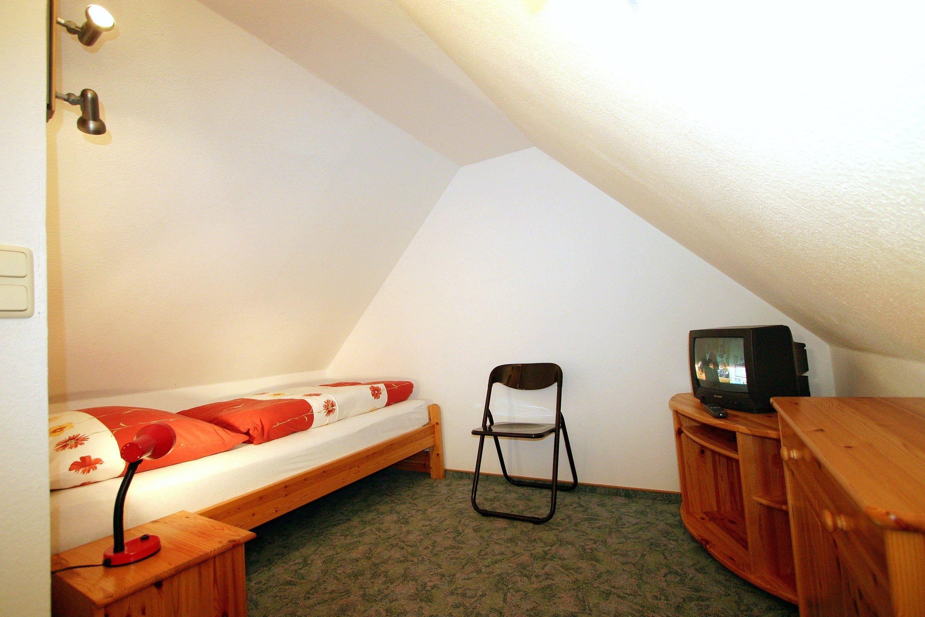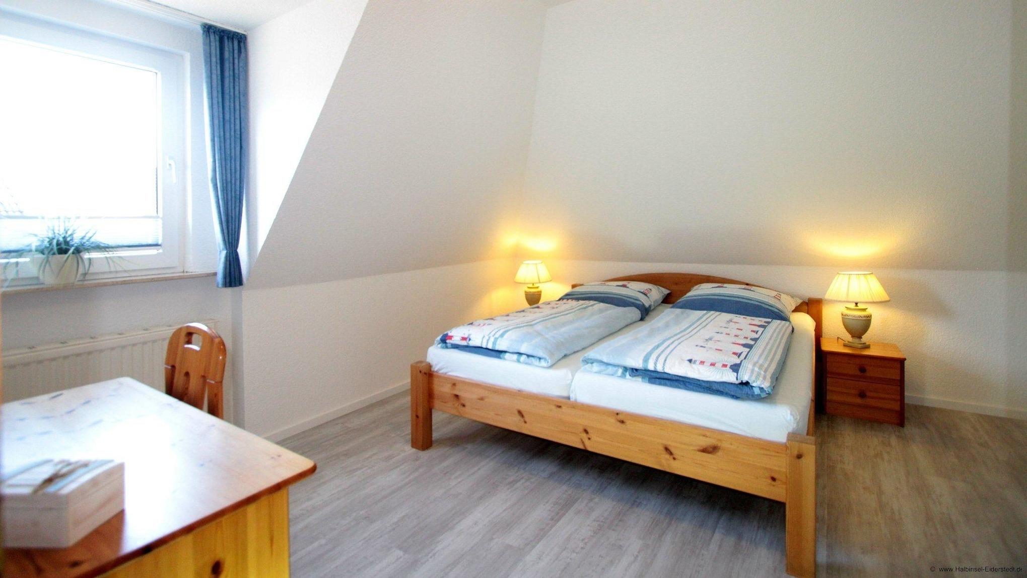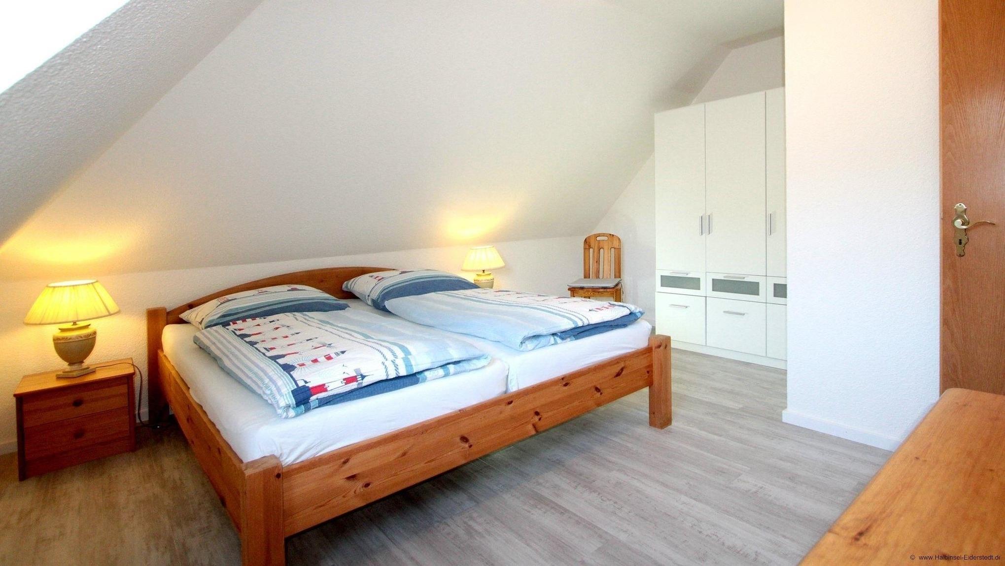 Das Elternschlafzimmer wartet mit einem großen und bequemen Doppelbett auf Sie. Im zweiten Schlafzimmer im Dachgeschoss stehen zwei komfortable Einzelbetten, diesen erreichen Sie über eine gewendelte Treppe. Bei uns werden Sie bestimmt gut schlafen!
