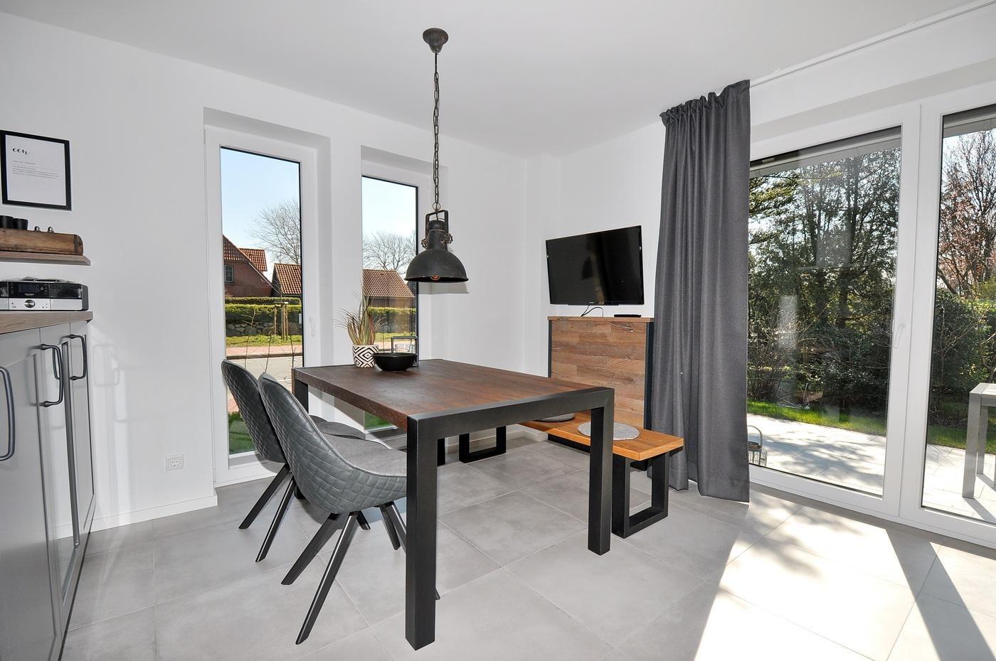Die 2020 neu erbaute Doppelhaushälfte empfängt Sie im modernen Look direkt am Anfang des Ortsteils Böhl. Von hier aus gelangen Sie fußläufig in ca. 15 Minuten in den historischen Ortskern mit vielen Einkaufsmöglichkeiten und Restaurants. Ebenso schnell erreichen Sie den Deich und die Dünenlandschaft des Ortes für einen ausgedehnten Spaziergang. Die Haushälfte selbst überzeugt mit durchdachtem Design und bietet Ihnen einen Raum für erholsame Urlaubsstunden.