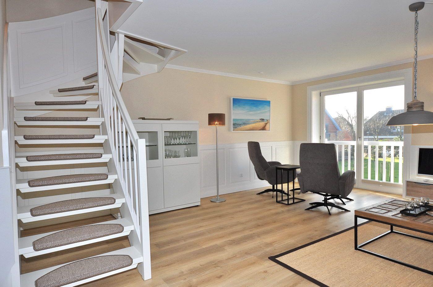 Dieses wunderschöne und gemütliche Appartement im Obergeschoss einer reetgedeckten Wohnanlage inmitten des alten Dorfkerns lädt zum Entspannen und Verweilen ein. In wenigen Schritten erreichen Sie neben dem Heimatmuseum auch verschiedene Einakufsmöglichkeiten, Restaurants und den Bäcker. Vor allem in den Sommermonaten bietet zudem der wöchentliche Markt eine tolle Auswahl. Die durchdachte Raumaufteilung und der herrliche Blick in den alten Dorfgarten runden das Gesamtbild ab.