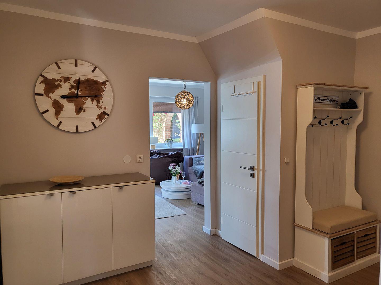 Die Wohnung 5 im Erdgeschoss ist die größte Wohnung vom Haus Windjammer. Mit 100qm ist es sehr großzügig aufgeteilt und bietet viel Platz. Wohnzimmer, Essbereich und Küche sind offen gestaltet und gehen ineinander über.