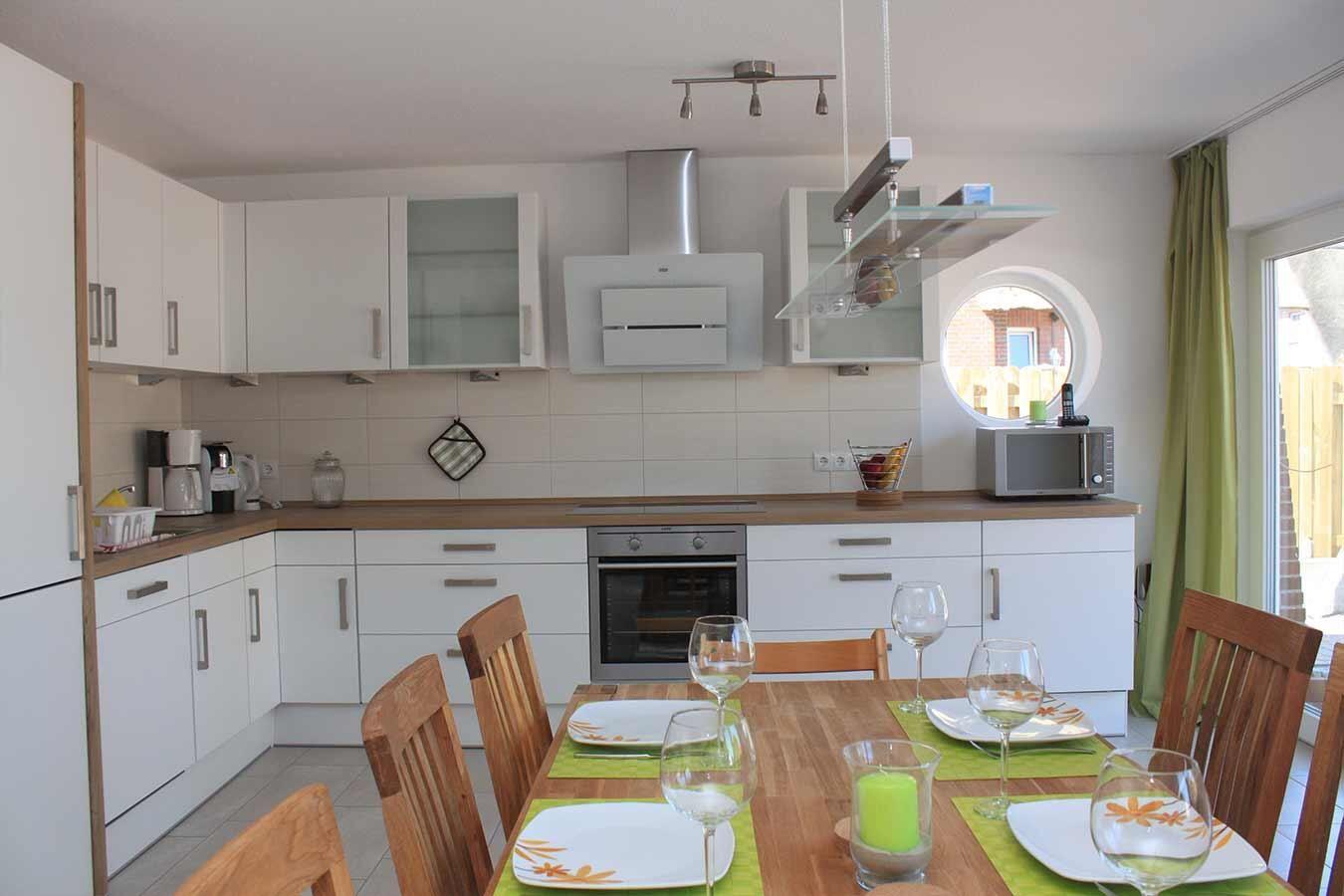 Im Erdgeschoss erwartet Sie die offene Küche, die mit Geräten wie Geschirrspüler, Ceran-Kochfeld und Mikrowelle ausgestattet ist. Der Wohnbereich strahlt Behaglichkeit aus und ist mit Annehmlichkeiten wie einem DVD-Player und einer Stereoanlage versehen. Er ist nahtlos mit dem Essbereich verbunden, der zum gemütlichen Beisammensein einlädt.