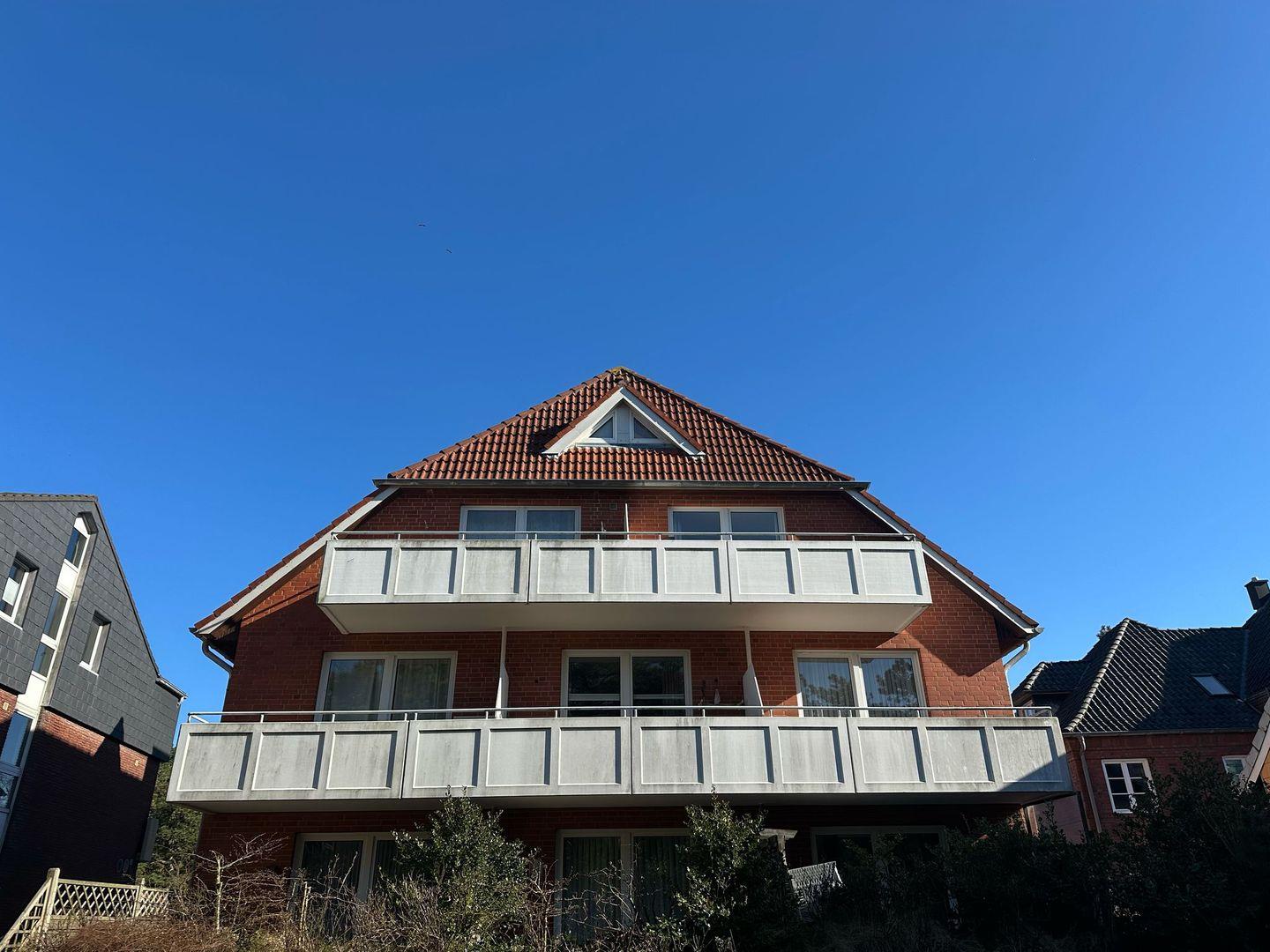 Ferienwohnung 12, Haus Gröde - Diese geräumige und helle Ferienwohnung mit Meerblick befindet sich in sehr zentraler Lage im Ortsteil Bad. In nur etwa 2 Gehminuten erreichen Sie das Kurzentrum, die Dünentherme und die Flaniermeile. Die Badbrücke mit dem Übergang zum Strand ist etwa 5 Gehminuten entfernt.