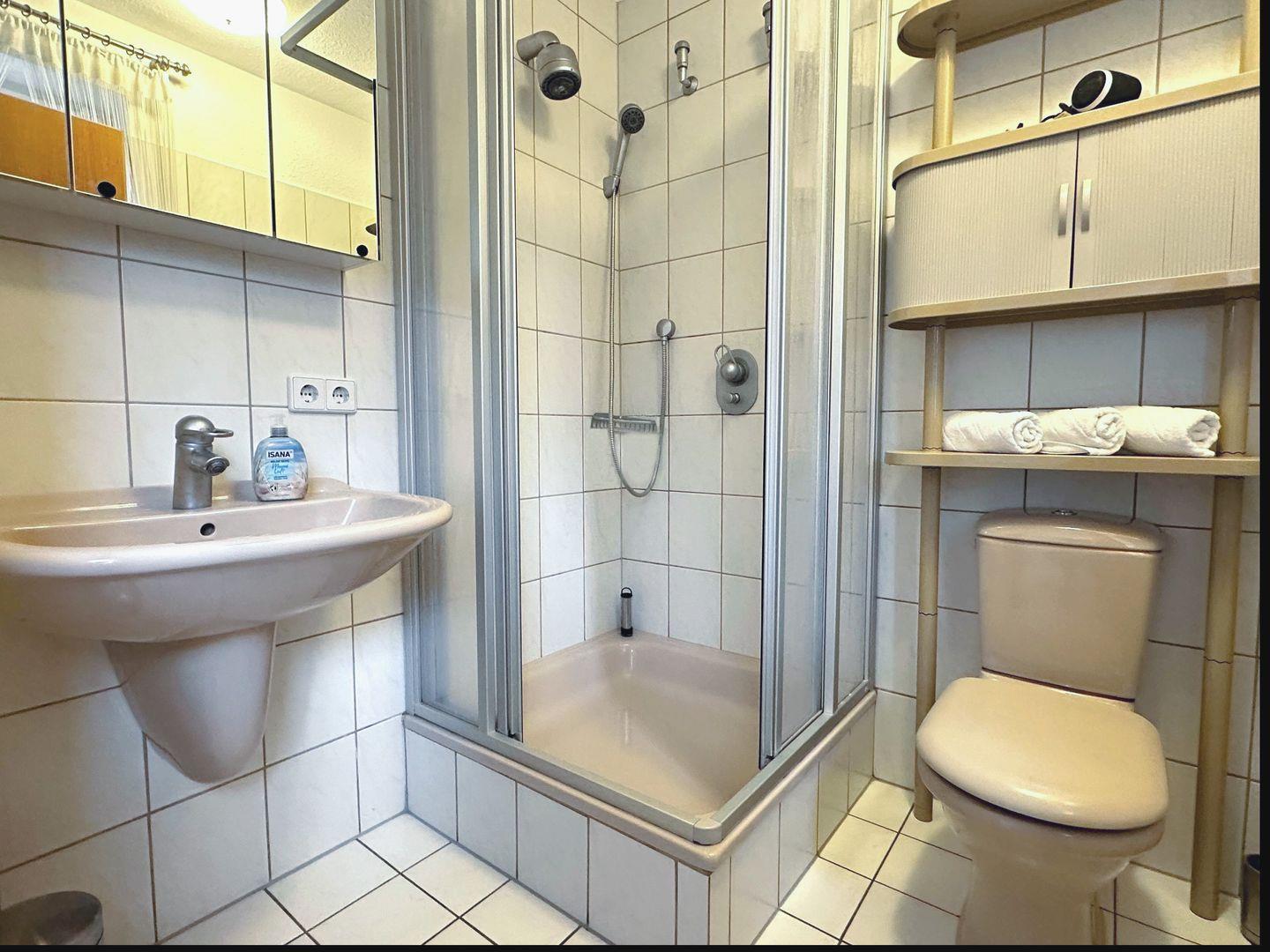Die 2 Schlafzimmer befinden sich im Obergeschoss. Ein Duschbad, eine gemeinschaftliche Waschmaschine und ein Abstellraum stehen ebenfalls zur Verfügung.