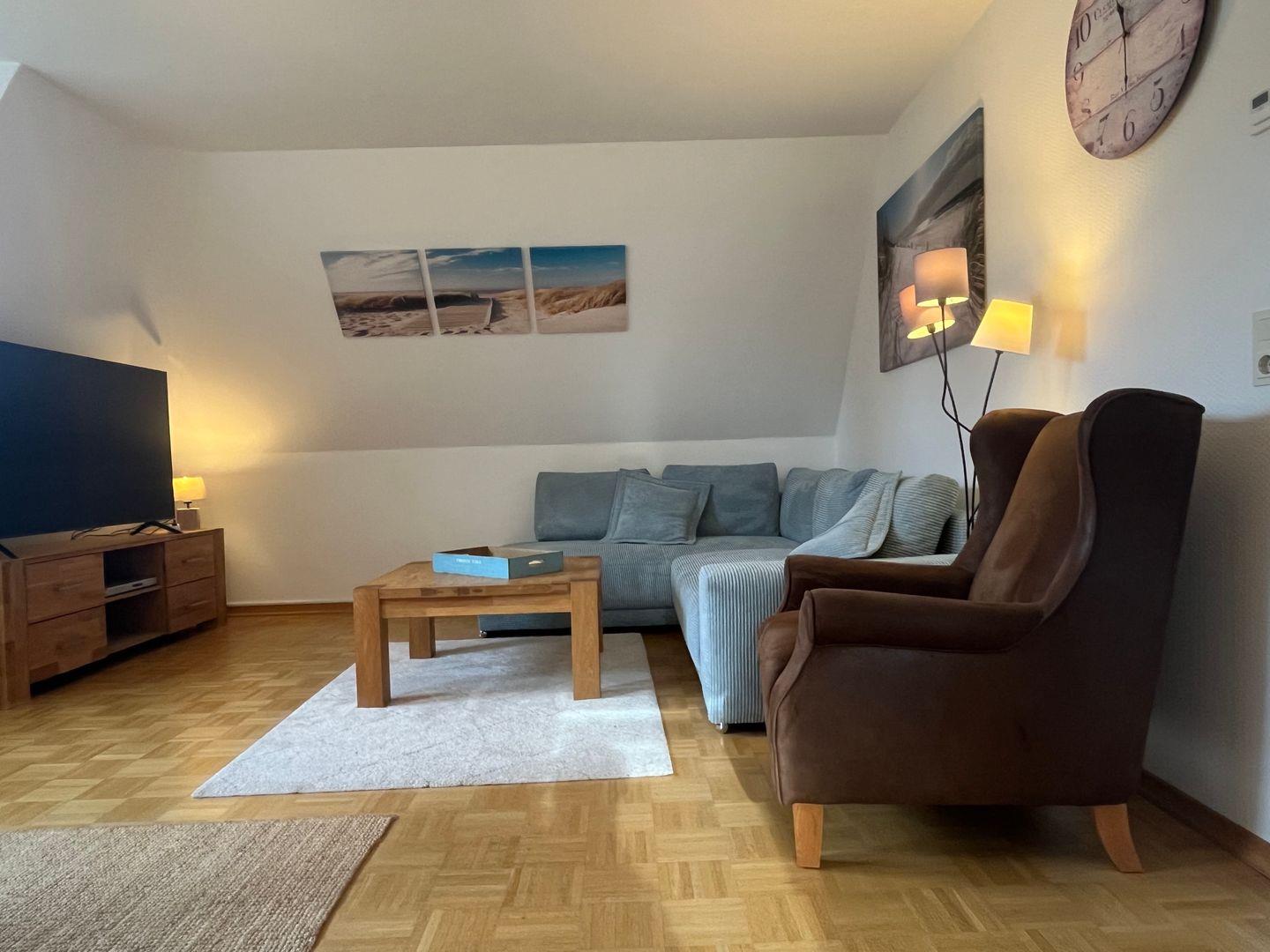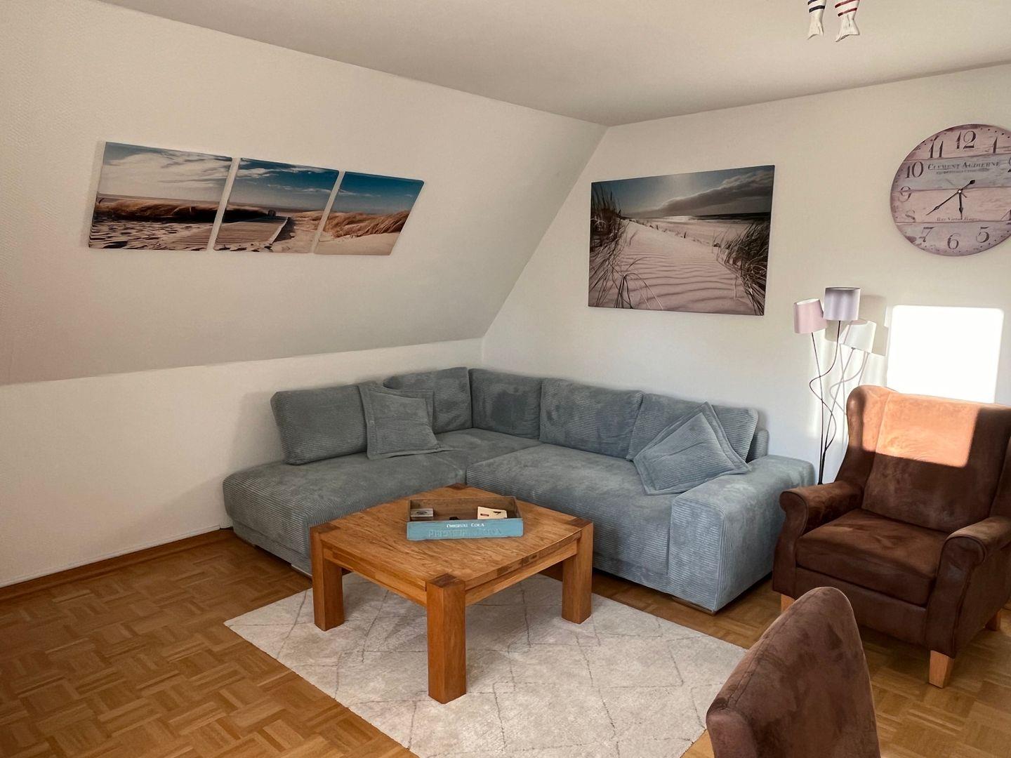 Die Ferienwohnung "Austernfischer" im Haus Sonnenwinkel liegt im 1. Obergeschoss und ist 70 qm groß, geeignet für bis zu 4 Personen, auch mit Hund. Der großzügige Wohn- und Essbereich ist durch die Fensterfront und den Zugangstüren zum Balkon lichtdurchflutet. Genießen Sie gemütliche TV-Abende in der Sitzecke oder speisen Sie am großen Esstisch mit Familie und Freunden. WLAN ist vorhanden.