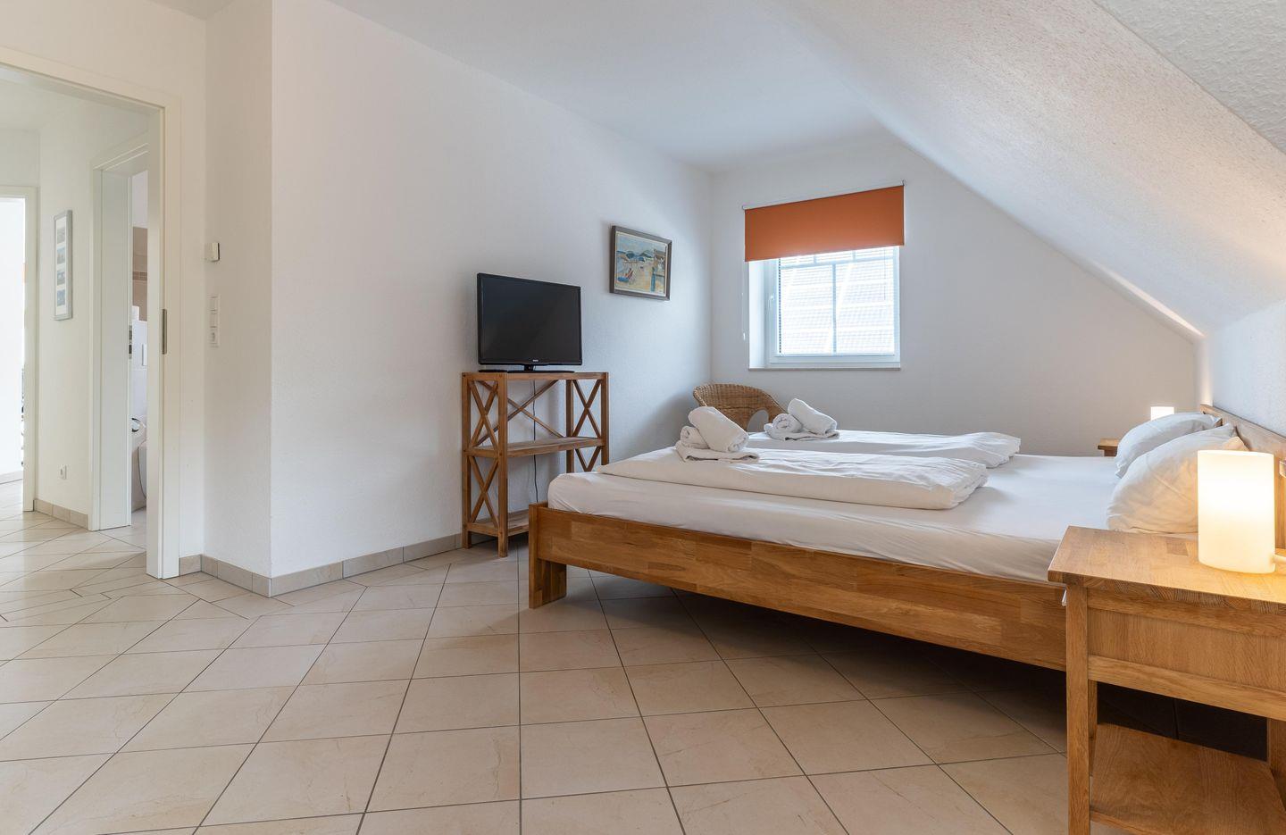 Große Doppelhaushälfte im Ortsteil Dorf, 130 m² über 2 Etagen. Ausgestattet u.a. mit Sitzecke, Flachbild-TV (SAT-Anlage, CD-Player), Küche (Geschirrspüler, Backofen), möblierte Südterrasse, Gäste-WC mit Dusche, Hauswirtschaftsraum (Waschmaschine). Schlafraum mit Flachbild-TV und Doppelbett (1,80 x 2,00 m), Schlafraum mit zwei Einzelbetten (je 90 x 2,00 m), Schlafraum mit einem Tandembett (1,60 x 2,00 m). Modernes Duschbad mit WC. Holzgrill, Kinderhochstuhl, Reisebett. Hunde auf Anfrage. Kostenloser WLAN-Zugang, PKW-Stellplatz am Haus. Nichtraucherhaus. Das Laden von elektrisch betriebenen PKWs oder Hybridfahrzeugen sowie das Einstellen von Wohnwagen und Wohnmobilen mit Anschluss an den Hausstrom ist nicht zulässig.