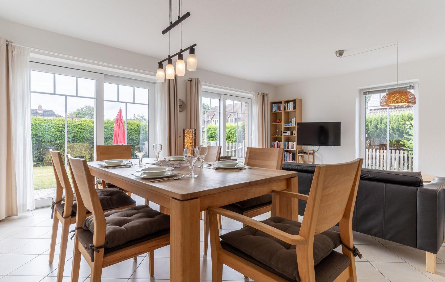 Ferienhaus Sommerbrise - Dieses Haus bietet auf einer Fläche von 130 qm mit einer ruhigen Lage am Heideweg viel Platz für Erholung. Es verfügt über ein großzügiges Wohnzimmer mit einer davorliegenden Südterrasse.