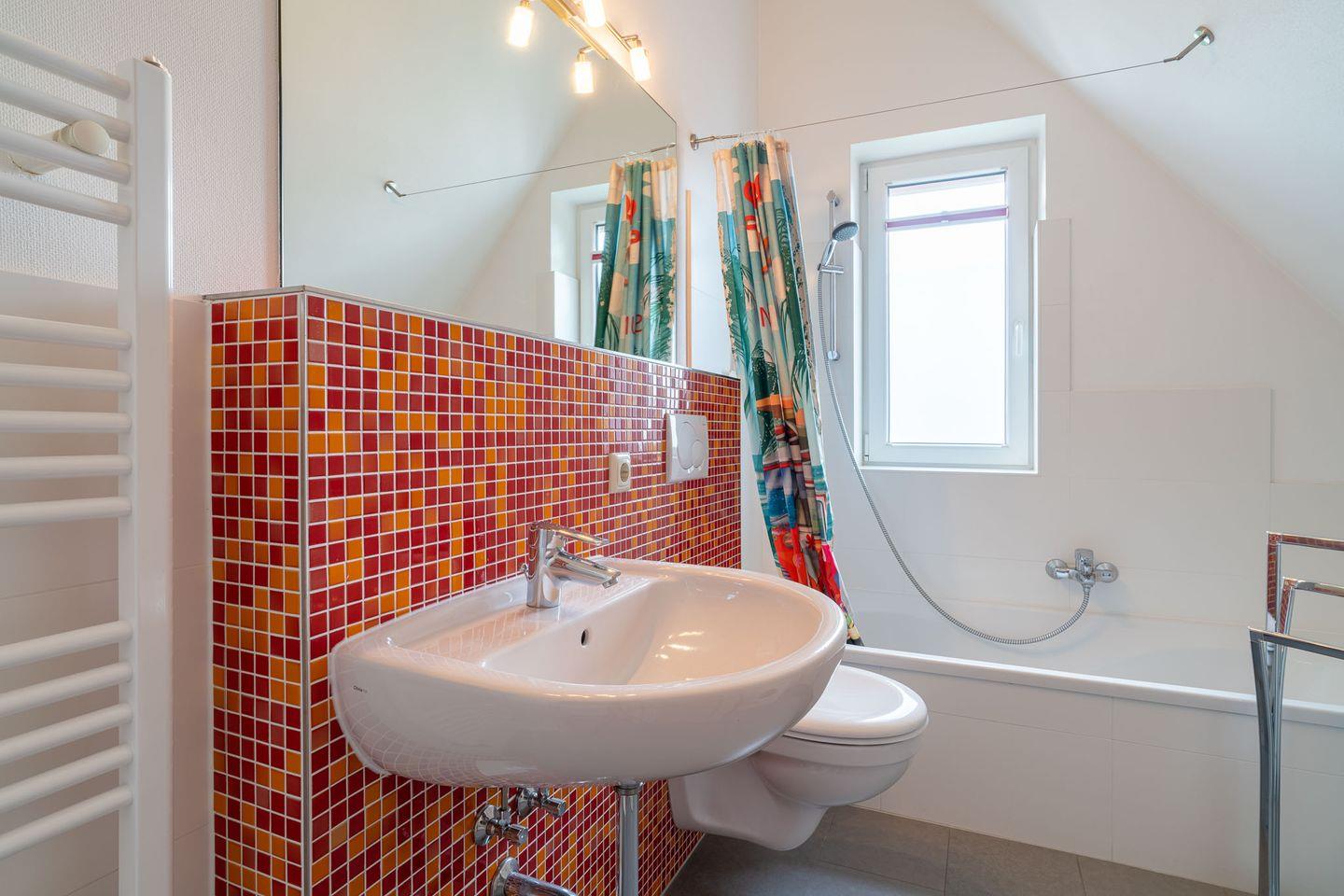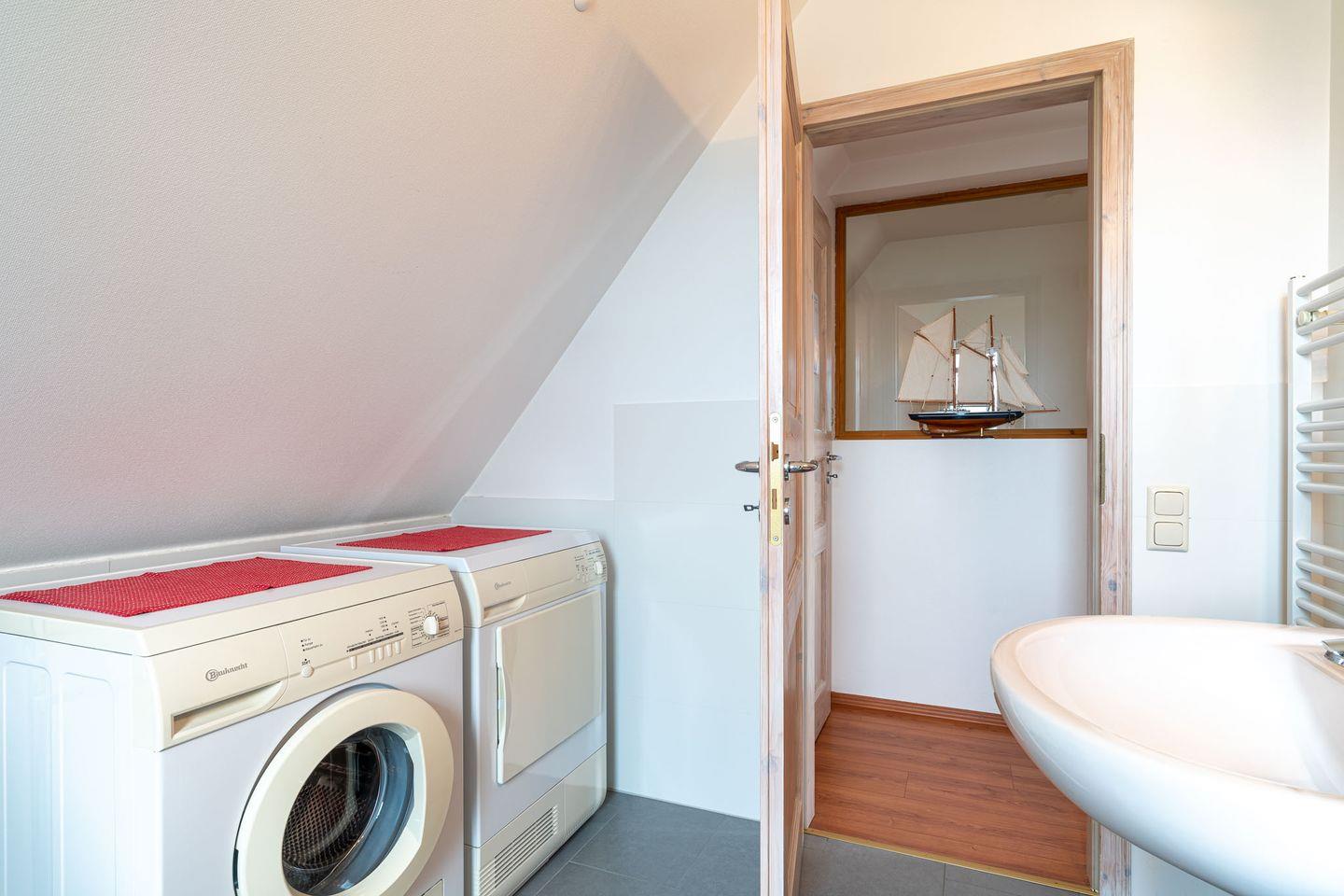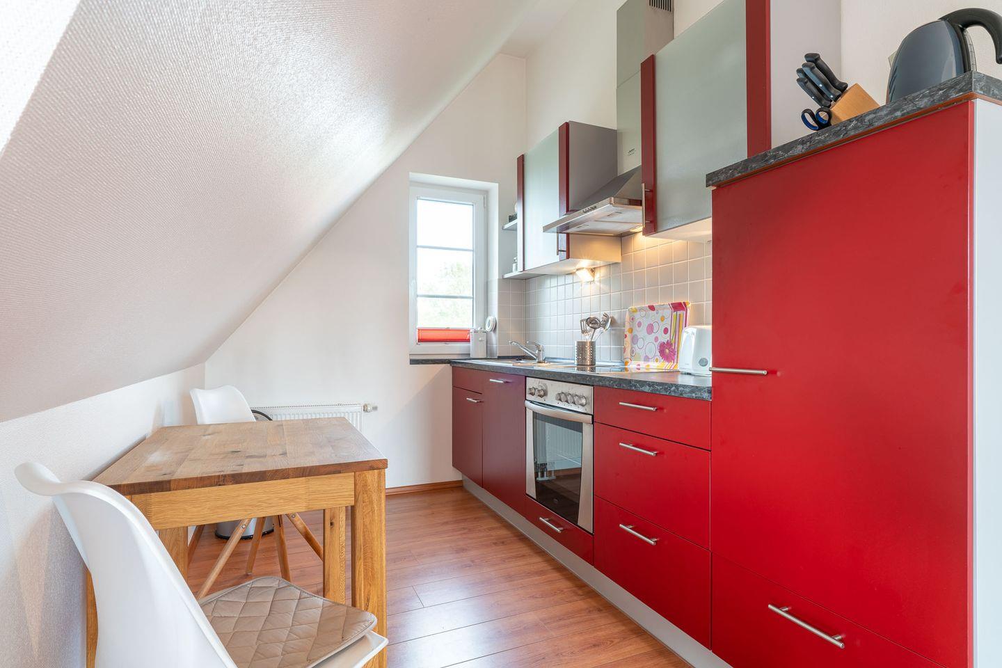 Dachgeschoß. Doppelbett, Einbauküche mit Herd und Backofen, Geschirrspüler, Bad