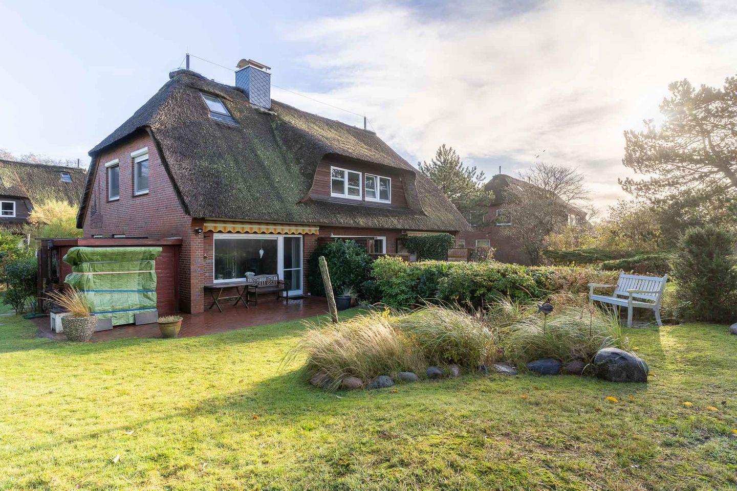 Ruhige Reetdach-Reihenhausanlage im idyllischen Ortsteil Dorf, direkt hinter den Dünen gelegen. Nichtraucher! Erdgeschoss: Flur, separate Einbauküche mit Geschirrspüler, Herd mit Backofen, Wohnbereich mit Essecke. Erstes Obergeschoss: 2 Schlafzimmer (1 Doppelbett, 2 Einzelbetten), Duschbad/WC. Dachgeschoss: Lesebereich, Terrasse mit Gartenmöbeln, Garagenstellplatz.