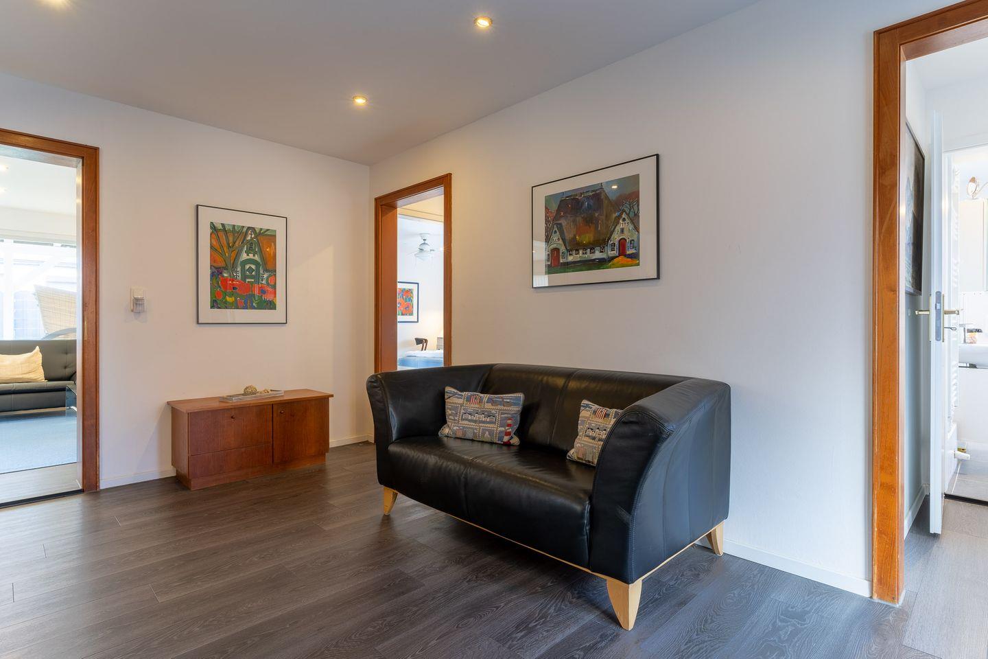 Die sehr großzügige mit 4 Sternen vom DTV zertifizierte, ca.100 qm große und helle Ferienwohnung für vier Personen liegt im Erdgeschoß eine Einzelhauses. Sie besteht aus einem Wohnzimmer, zwei Schlafzimmern mit Doppelbetten (einmal 180x190 und einmal 180x200), einem Küchen/Essbereich, einer Eingangsdiele, einem Vollbad und einem separaten Gäste-WC. Die vollständig eingerichtete Küche verfügt über einen Herd mit Cerankochfeld und Backofen, Mikrowelle, Kühlschrank, Toaster, etc..