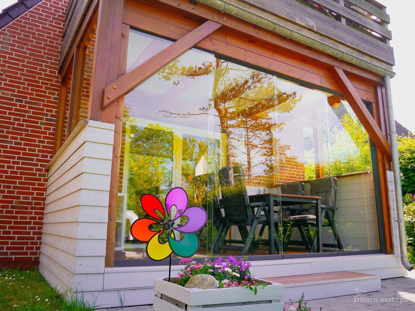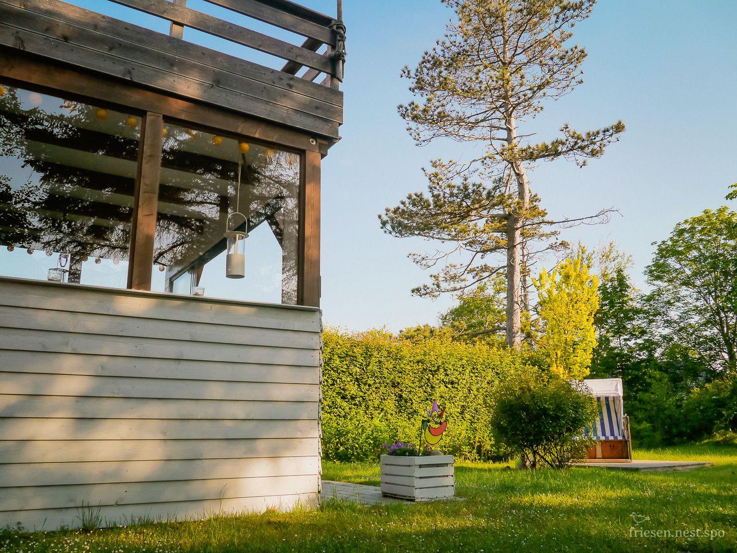 Besonders einladend sind die zwei Terrassen: eine windgeschützte und überdachte Terrasse sowie eine zweite Terrasse mit Strandkorb, die sich im großen, ruhigen Gartenanteil befinden – perfekt für entspannte Stunden im Freien.