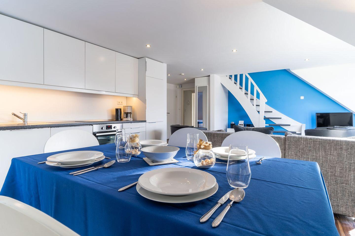 Moderne 4-Personen-Ferienwohnung mit 2 Schlafzimmern, 2 Bädern und 2 Balkonen. Vollständig ausgestattete Küche mit Geschirrspüler und Kaffeemaschine. Eigener PKW-Stellplatz und abschließbarer Fahrradschuppen vorhanden. Bettwäsche und Handtücher inklusive. Rauchen und Haustiere sind nicht gestattet.