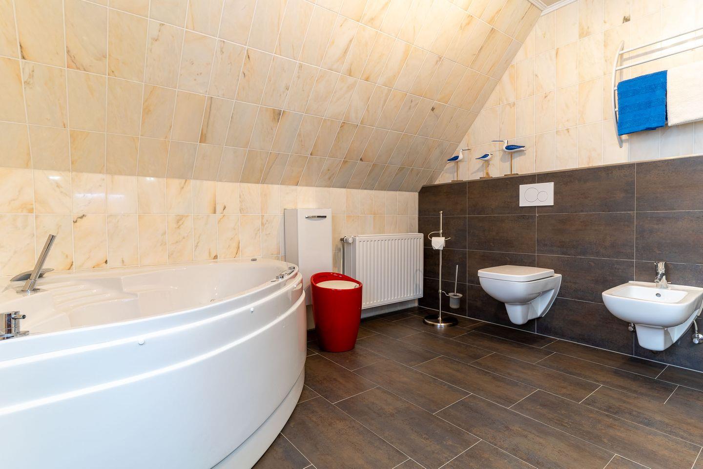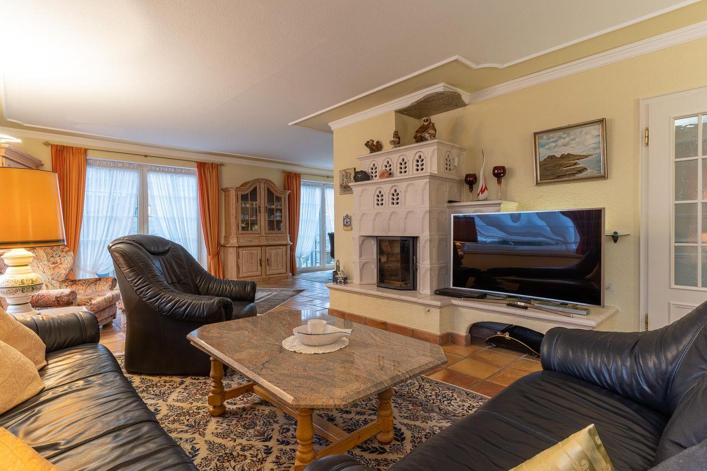 Der Deutsche Tourismusverband hat die Sturmschwalbe mit 5 Sternen ausgezeichnet, wobei die Mindestanforderungen für die 5 Sterne klar übertroffen wurden. Sie spüren sofort beim Betreten des Hauses, wie wichtig es uns als Ihren Gastgebern ist, Ihnen ein stilvolles Ambiente für einen perfekten Urlaub an der Nordsee zur Verfügung zu stellen. Mit viel Charakter und einem ganz eigenen Charme wird die Sturmschwalbe für Sie ein Zuhause in der Ferne. Auf der gemütlichen Ledergarnitur können Sie nach einem ausgedehnten Tag an der frischen Luft bei einem gepflegten Glas Wein entspannte Stunden am Kamin verbringen. Für die musikalische Untermalung sorgt dabei entweder die Bose-Stereoanlage mit CD-Player oder das Teufel-Internetradio. Sie können Ihren Blick auch auf den großen Fernseher richten, der mit 138 cm Bildschirmdiagonale, OLED-Technologie und 4K Infinite Contrast höchsten Ansprüchen genügt. Der angeschlossene Blu-Ray-Player erweitert Ihre Optionen. Für ihn steht eine kleine Sammlung von Spielfilmen zur Verfügung, ebenso wie eine Auswahl an Gesellschaftsspielen und eine Reihe guter Bücher. Der angrenzende, lichtdurchflutete Wintergarten fängt jeden Sonnenstrahl ein und wird Ihr Lieblingsplatz im Haus sein, wenn die Sonne einmal nicht den ganzen Tag ununterbrochen scheint. Auch wenn ein kräftiger Sommerregen auf das Glasdach prasselt, während Sie einen heißen Tee genießen, werden Sie den Wintergarten lieben. Bei gutem Wetter lädt unser idyllischer Garten zum Verweilen ein. Lassen Sie im Strandkorb oder auf einer der Sonnenliegen die Seele baumeln. Für grenzenloses Grillvergnügen nutzen Sie den Smoker oder den Weber-Grill (Master-Touch GBS, 57 cm Durchmesser). Die exzellente Küchenausstattung schafft Ihnen die Freiheit, sich unabhängig von Hotelzwängen nach Ihren Wünschen zu versorgen. Unseren Gästen steht in der exklusiven Marken-Design-Küche eine komplette E-Geräte-Serie der Firma Miele zur Verfügung: mit großem Komfort-Kühlschrank und separatem Tiefkühler (ca. 80 l), Backofen inkl. Clean-Steel-Edelstahl, großem Induktionsfeld (Zeitersparnis beim Kochen ca. 50 bis 60 %) mit Warmhaltefunktion, Wand-Dekor-Dunstabzugshaube aus Glas/Edelstahl und Geschirrspüler XXL in angenehmer Bedienhöhe. Kaffeeliebhaber nutzen je nach Geschmack unsere Kaffeemaschine, eine Pad- oder die Espressomaschine. Mikrowelle, Wasserkocher, Toaster, Eierkocher, Küchenmaschine, Brotschneidemaschine, Stabmixer, Waffeleisen, elektrische Zitruspresse sowie edles Porzellangeschirr der Marke Friesland in üppigem Umfang und eine außergewöhnlich große Anzahl von Gläsern sind ebenfalls vorhanden. Im Obergeschoss bieten die drei Schlafzimmer höchsten Komfort beim Schlafen und Träumen in der traumhaft ruhigen Lage der Sturmschwalbe. Alle Schlafräume sind ausgestattet mit Doppelbetten, hochwertigen Matratzen, Allergiker-Bettdecken in Übergröße (155 cm * 220 cm) und einem Flachbildfernseher. Als Highlight zum Entspannen finden Sie im Obergeschoss zudem unsere „Helo“-Sauna/Infrarot/Dampfsauna (210 x 210 cm). Noch mehr Entspannung ermöglicht ein kleiner Whirlpool mit 30 Luftdüsen. Bei Bedarf stehen Ihnen im Wirtschaftsraum eine Miele-Waschmaschine und ein Miele-Wäschetrockner zur Verfügung. Ins Haus integriert ist eine Garage mit Abstellmöglichkeiten. Die Fenster und die Terrassentür sind mit hochwertigen Insektenschutzrahmen versehen. Eine Fußbodenheizung sorgt zu jeder Jahreszeit für behagliche Wärme. WLAN und Telefonverbindungen ins deutsche Festnetz sind inklusive, ebenso die exklusive Nutzung unseres Saisonstrandkorbs am Meer. Bitte beachten Sie, dass es sich bei der Sturmschwalbe um eine Nichtraucherwohnung handelt. Haustiere können leider nicht aufgenommen werden. Mit dem Kamin, der Sauna, dem Whirlpool, der Fußbodenheizung, dem lichtdurchfluteten Wintergarten und der High-End-Unterhaltungselektronik eignet sich die Sturmschwalbe auch hervorragend als Refugium für erholsame Tage in der Nebensaison.