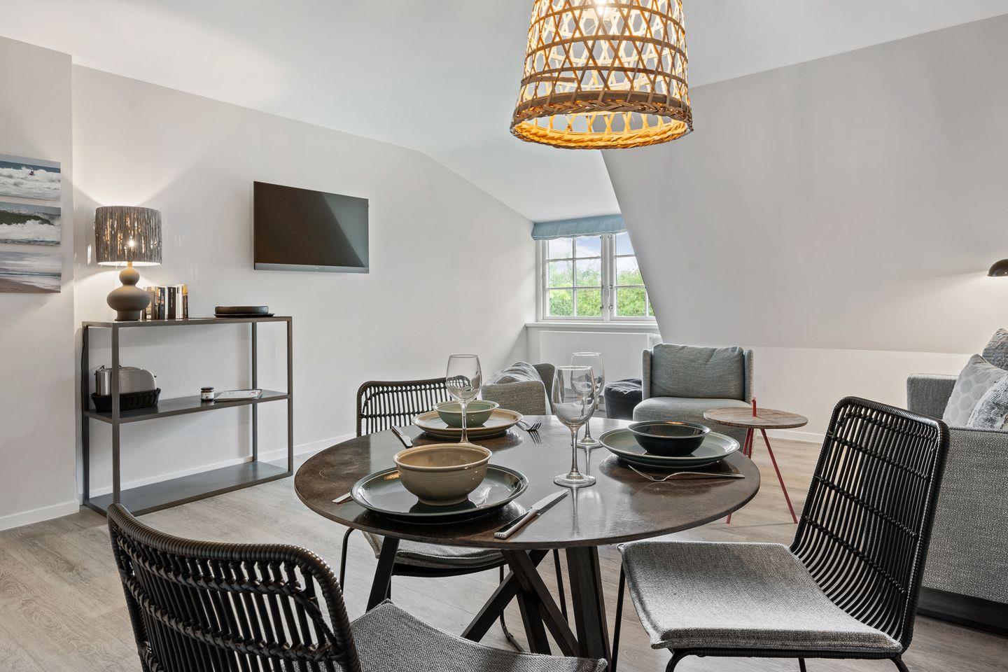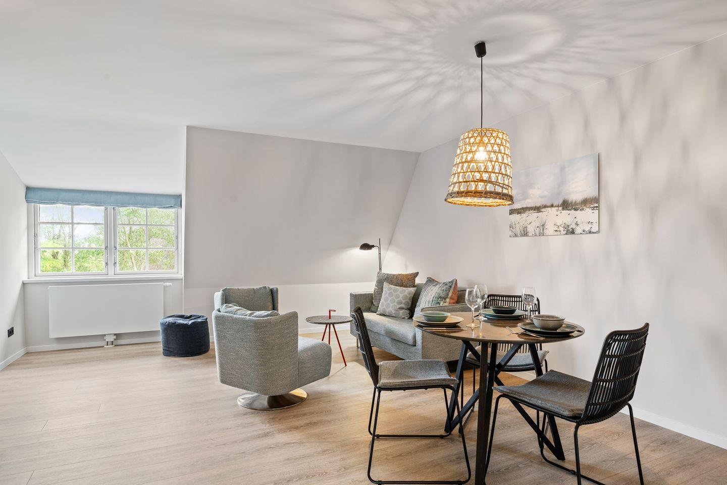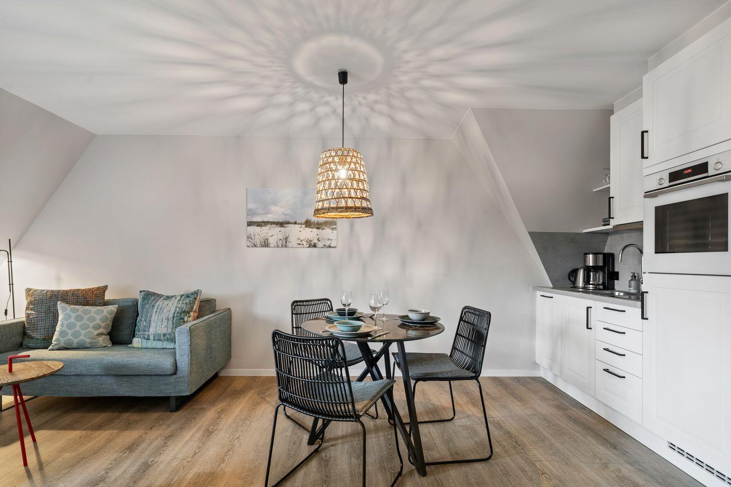 Das wunderschöne, lichtdurchflutete Appartement "Beach Lodge 7" in dem 2022 komplett renovierten "Reethaus Beach Lodge" verfügt über ca. 40 m² und bietet Platz für 1-2 Personen im 1.OG.